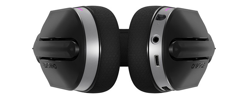 Oikeanpuoleisessa kupissa ei ole mitään kontrolleja, vaan ne kaikki, samoin kuin liittimet, löytyvät vasemmalta puolelta. Omat kytkimensä saavat mukavasti naksahtavat mikrofonin vaimennus/puheluun vastaaminen - ja virta/LED-sammutus-painikkeet sekä yhteystavan valinta (2,4/BT). Äänenvoimakkuusrulla ei varsinaisesti herätä luottamuksen tuntemuksia, mutta on siinä jonkin verran vastetta. Nappien merkinnät on tehty niin hentoisesti ja vähän kryptisestikin, että keski-ikäissilmillä piti kaivaa paketista ohjekirja varmistamaan, että olen ymmärtänyt niiden toiminnot oikein.
