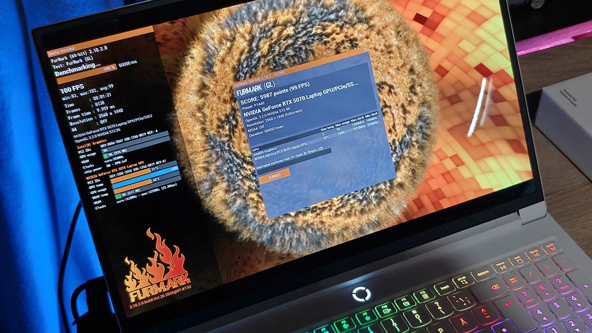 Legionin lehdistömateriaali kertoo, että Legion Coldfront -teknologia takaa “lämpötehokkaamman, hiljaisemman, viileämmän koneen”. Useammankaan tunnin videokatselun aikana koneella ei ollut mitään ongelmia, mutta heti kun käynnisteli vähän tuhdimpia pelejä Steamista, tuulettimet alkoivat puhkua sellaisella voimalla, että ainakin “hiljaisemman” sai unohtaa. Testipelailin Wreckfest 2:a, Controlia sekä Ratchet & Clankia kohtuullisen hyvillä asetuksilla täydellä resoluutiolla ja pelielämys oli miellyttävä. FurMark antoi tulokseksi hieman alle 6000.