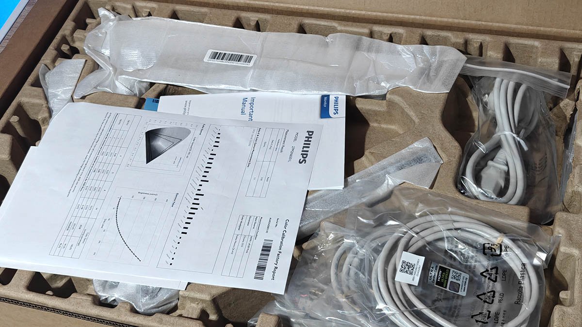 Liitäntäpuolelta löytyy kaksi HDMI:tä (2.1), yksi DisplayPort (1.4), 3,5 mm kuulokeliitäntä sekä kolme USB-liitäntää (3.2 Gen 1, USB-B, USB-A). Näytön takaosaa kiertää Philipsin Ambiglow-valaistus, johon siihenkin on nyt ympätty tekoälyä ruudulla oleviin väreihin mätsäämiseksi. Laite on pakattu laatikkoonsa hyvin selkeällä tavalla ja sen kokoaminen on erinomaisen helppoa yhdenkin tekijän toimesta - jalusta loksahtaa tukevasti paikoilleen ja ainoa ruuvi on sekin sormilla käännettävä. Ainoa painike koko laitteessa on klikattava valikonkäyttötatti, joihin olen alkanut viimein tottua. Kokonaisuus on kaunis, minimalistinen ja tyylikäs, joten useita rasteja listalle, jonka perusteella voisin laitetta itselleni harkita hankkivan.