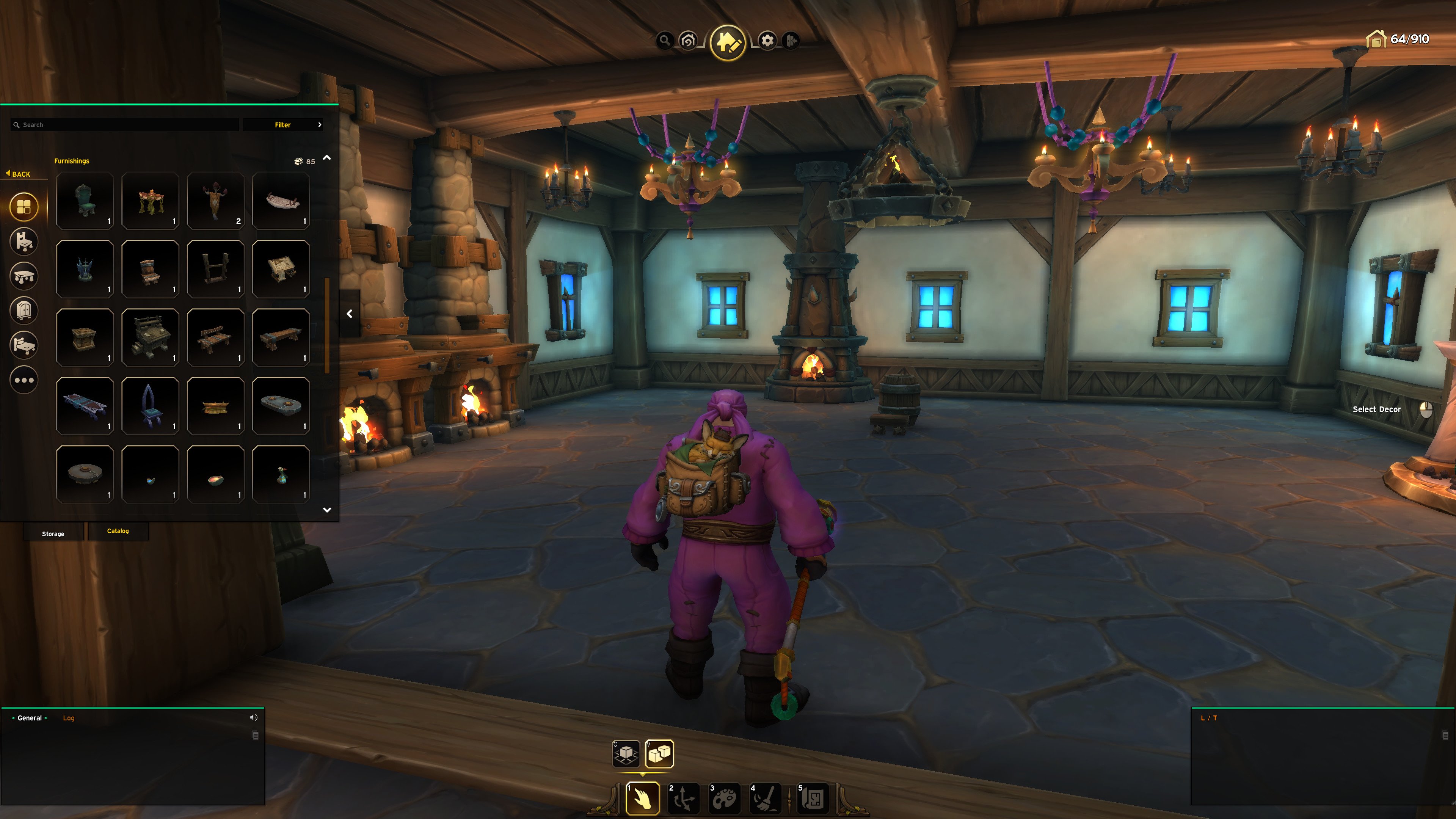 Kun se mökki on hankittu, se pitäisi kalustaa. Kuten kaikki varmasti ennakkoon arvasivat, huonekaluja, maaleja, tapetteja ja muuta tarpeellista tipahtelee nyt palkintoina erilaisista tehtävistä, instanssien pomoilta, maailmaan kätketyistä aarteista ja kaikkialta muualtakin. Tunnustan, että puhkesin nauramaan, kun sain tehtävän, jossa minua kehoitettiin tappamaan 15 vihollisen soturia ja tuomaan näiden päät takaisin, ja saisin sitten palkinnokseni kivan yöpöydän!