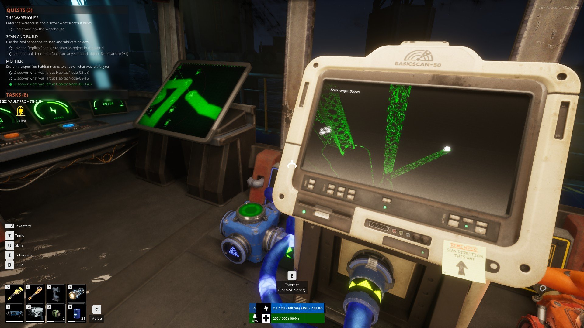 Jotakin The Last Caretakerin täytyy myös tehdä oikein, sillä olen hinkannut samaa looppia tuntikymmenestä toiseen: seilaan uuteen paikkaan, hakkaan tai lasautan vihamieliset limamörmelöt sekä robottipallerot, -herhiläiset, -madot ja -sirkat tuusannuuskaksi, ja lopuksi kierrätän kaiken irtirevittävän materiaalin joko teollisen jyrsijän tai sirkkelin kautta. Kun kaikki rahtikonttia pienempi on silputtu uudelleenkäytettäväksi materiaaliksi, harkkomuotoiset materiaalit sullotaan arkkuihin ja matka jatkuu kohti seuraavaa, horisontissa siintävää etappia.