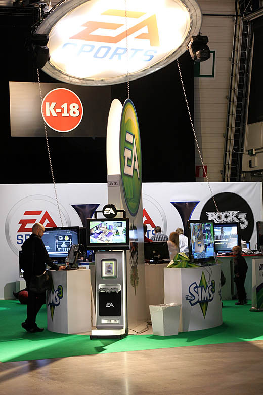 EA:n osastoa hallitsevat Sims 3, Rock Band 3 ja K18-osastolla Medal of Honor. Väliin on siroteltu mm. Wiin NHL Slapshot kummallisine kumimailoineen, Need for Speed sekä Kinectillä pelattavat EA Sports Active 2 ja Harry Potter. Rock Band 3:n myötä pääsee testaamaan uutta yli satanappista kitaraohjainta sekä keytar-tyylistä kosketinsoitinohjainta.