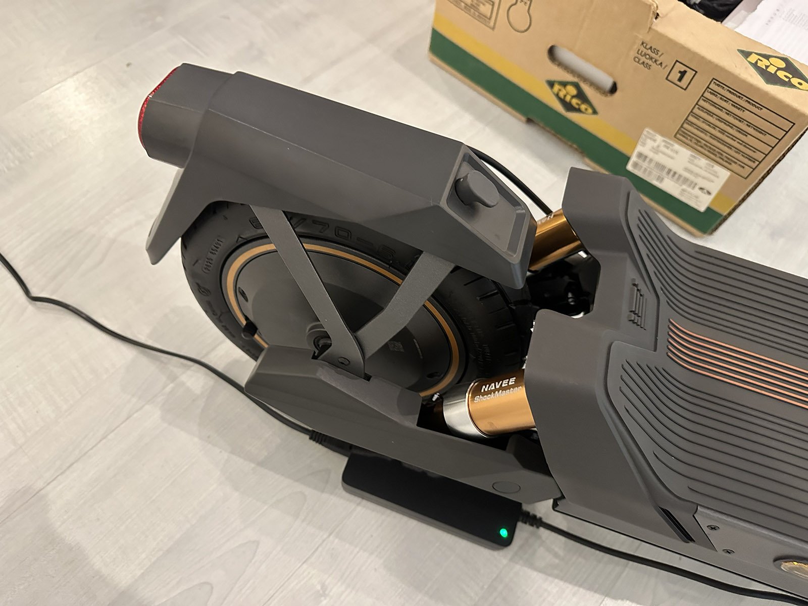 En kuitenkaan halua olla liian negatiivinen, koska GT5 Max on oikeasti aika siisti kevytkulkine. Olen pari kertaa vuokrannut kaupungilta skuuttia hieman pidemmälle matkalle ja saapunut perille rystyset valkoisina ja alkavaa tärinätautia potien – ja vannoen, että tätä virhettä en enää toista. Nyt huristelin ihan tyytyväisenä ympäri Mansea, jopa liki 10 kilometriä kerralla. Ei NAVEEkaan toki mikään Cadillac ole, mutta huomattavasti paremmin sen jousitus ja rengastus ottavat tärskyt vastaan kuin vuokraskuuttien jäykkä runko, ja vaikka pyörät ovat edelleen pienehköt, ovat ne kuitenkin hieman suuremmat kuin monessa muussa mallissa. Leveämpi runko auttaa mukavamman (vaikkei silti välttämättä mukavan) ajoasennon saamisessa, ja yleisesti ottaen tuote on laadukkaan tuntuinen. Sitä se toki yli 800 euron hintalapulla saa ollakin.