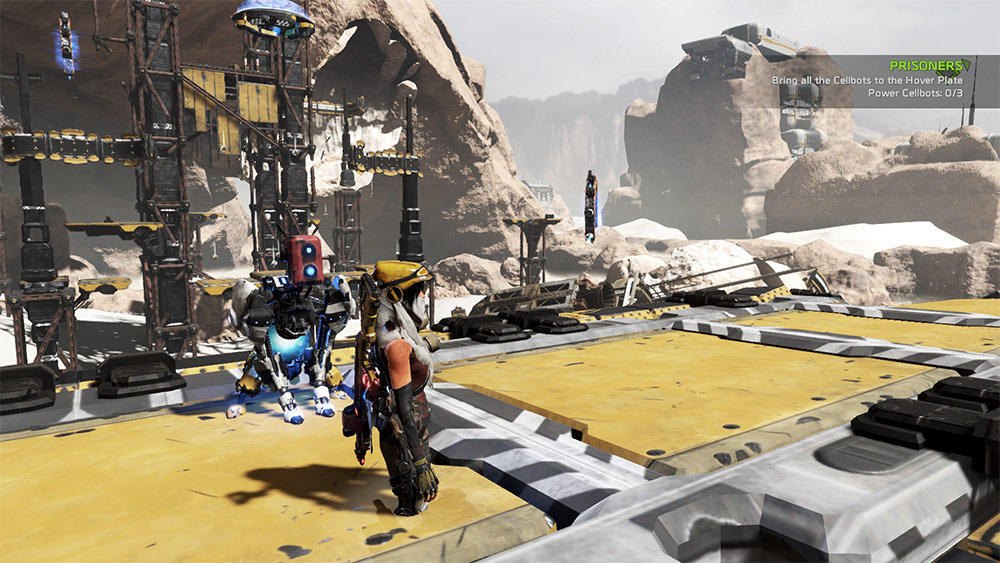 Taisteluissa tulikin hetkiä, joilloin ReCore oli omimmillaan: mäiskäisen tuota pari kertaa isommalla latinkilla, lähetän Mackin sen kimppuun, vaihdan aseen väriä tuota toista vihollista varten ja nappaan siltä coren ja pium paum poum, mäiske-baletti on sujuvaa ja nautinnollista. Toisaalta pomotaistelut heittävät areenalle yhden pelien vanhentuneimmista kliseistä: ovet menevät säppiin, eikä areenalta ole etenemistä, ennen kuin pomorobo apulaisineen on kasa rattaita ja mäntiä. Pelin varrella Joule saa myös muita robottiystäviä, joilla on omat vahvuutensa: gorillamainen Duncan on voimakas apuri ja hämähäkkimäinen Seth taas avustaa tasoloikinnassa.
