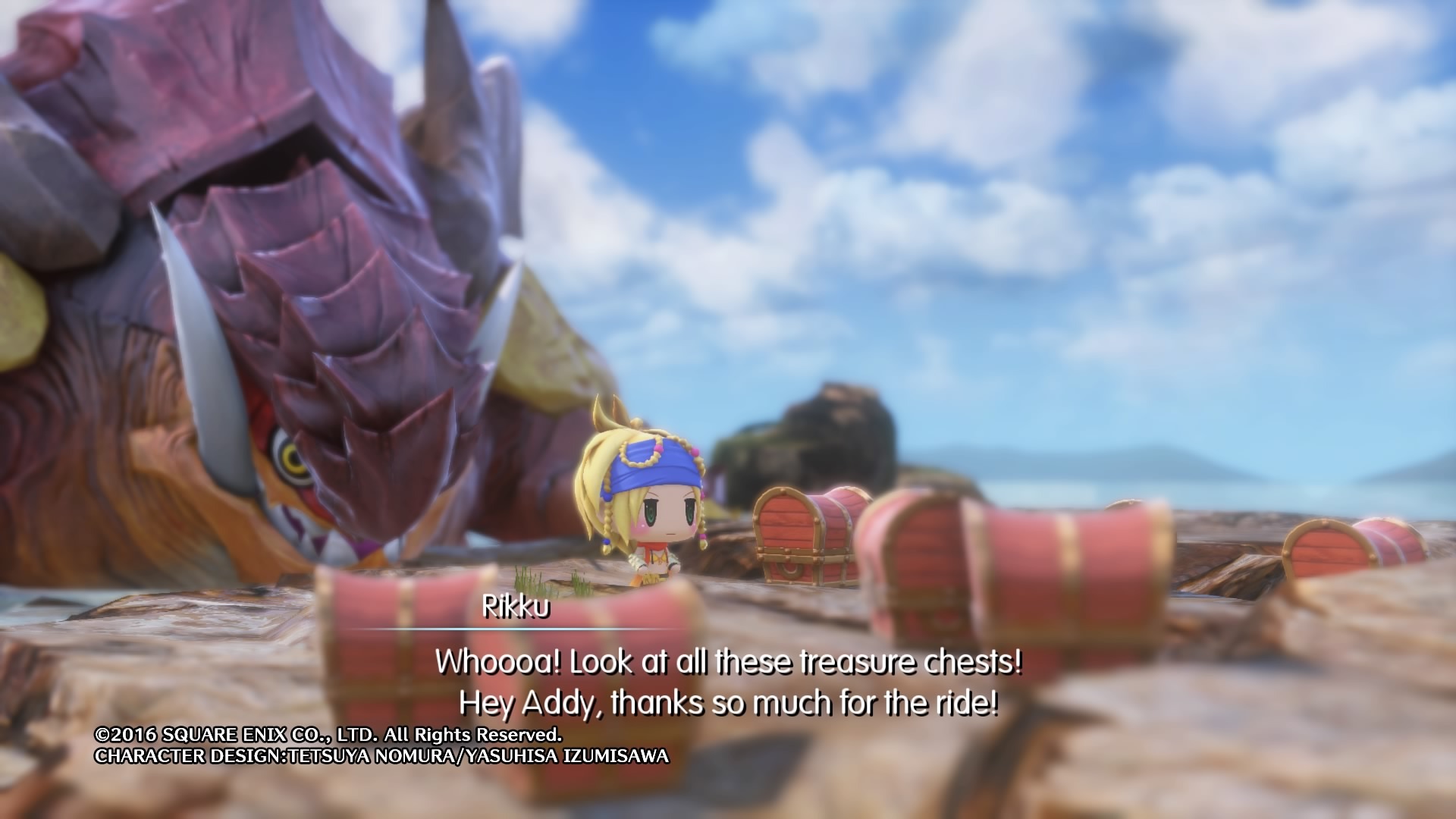 World of Final Fantasy yllätti minut. Odotin sen olevan hassu pieni välipala, joka tarjoaa faneille nostalgiaa seuraavaa pääsarjan peliä odotellessa. Nostalgiaa se kyllä tarjoaa ja on ehdottomasti hassu, mutta missään nimessä se ei ole pieni välipala. Koko peli tuntuu yhdeltä suurelta silmäniskulta Final Fantasy -yleisölle, ja näin ollen fani saa pelistä varmasti enemmän irti kuin totaalinen nyyppä. Sillä on kuitenkin niin paljon omaa annettavaa että myös ne, jotka eivät erota Squallia Vivistä, voivat viihtyä sen parissa. Kaikkien lukuisten viittausten ja vitsien lisäksi peli seisookin hyvin omilla jaloillaan itsenäisenä teoksenaan.