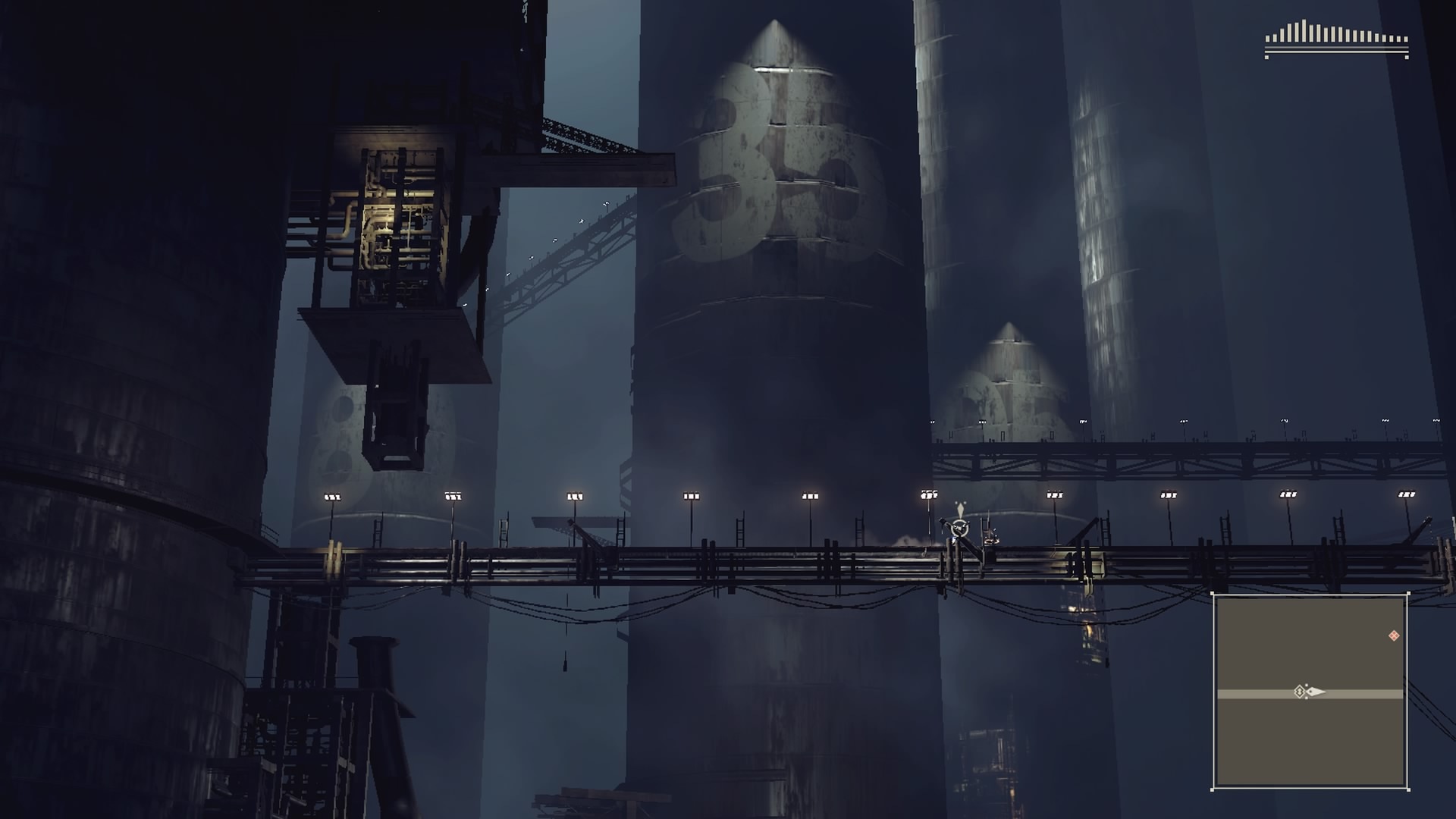 Nier: Automatan tapa yhdistellä kolmatta persoonaa sekä ylhäältä tai sivulta kuvattua kahden tatin räiskintää ihastuttaa tyylikkyydessään. Pelaajan edetessä kamera vaihtelee kuvakulmaa luontevasti, välillä ollen vapaasti ohjattavissa, toisinaan taas tiukasti paikoillaan. Vieraannuttamisen sijaan jokainen kohtaus antaa tunteen, että pelintekijät ovat todella pohtineet, miten jokaisesta kohtauksesta saadaan paras mahdollinen kokemus: miksi 2B:n juostessa täytyisi katsella tyhjää käytävää, kun kamera voi panoroida näyttääkseen jylhiä, mekaanisia torneja? Jokaisen kohtauksen maksimoinnin lisäksi eri vinkkelit pitävät pelikokemuksen mukavan vaihtelevana. Juuri kun robottiarmeijan harventaminen alkaa toistaa itseään, Automata vaihtaa vaihteita tai esimerkiksi pysäyttää etenemisen kokonaan, kertoakseen monisivuisen tarinan puhtaasti tekstinä.