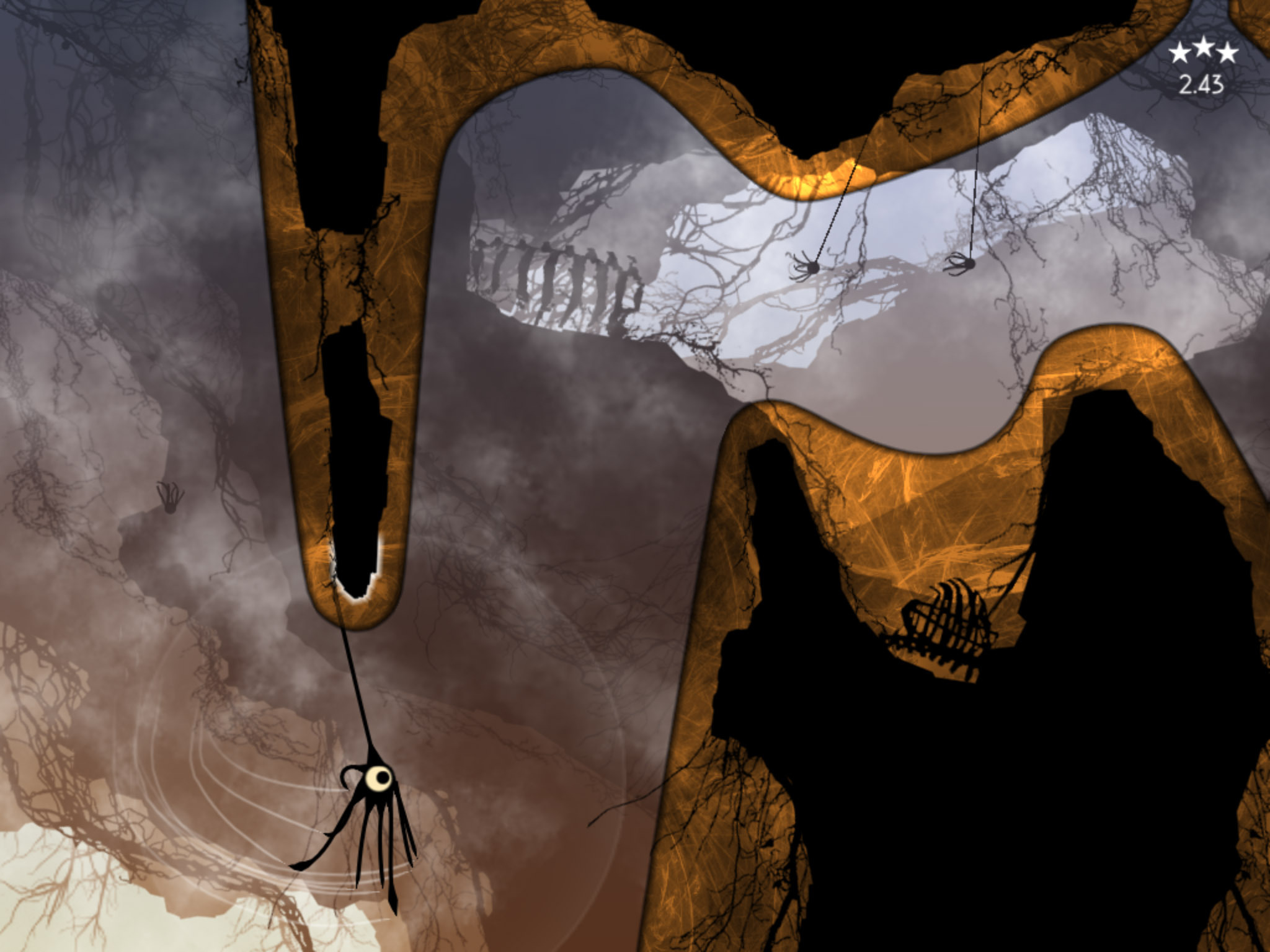 Pelaaja ohjaa otusta erilaisilla näytön kosketuksilla. Yksi napaus hyppää tai yrittää ottaa jostain lonkerollaan kiinni riippuen siitä, onko olento maassa vai ilmassa. Pidempi kosketus kävelyttää tai hidastaa otusta, tai roikkuessa vetää itseään kohdetta kohti. Näiden kontrollien sujuva käyttäminen oli yllättävän vaikeaa, ja oikeastaan vasta ensimmäisessä pomotaistelussa alkoivat perusteet olla kunnolla hallussa.