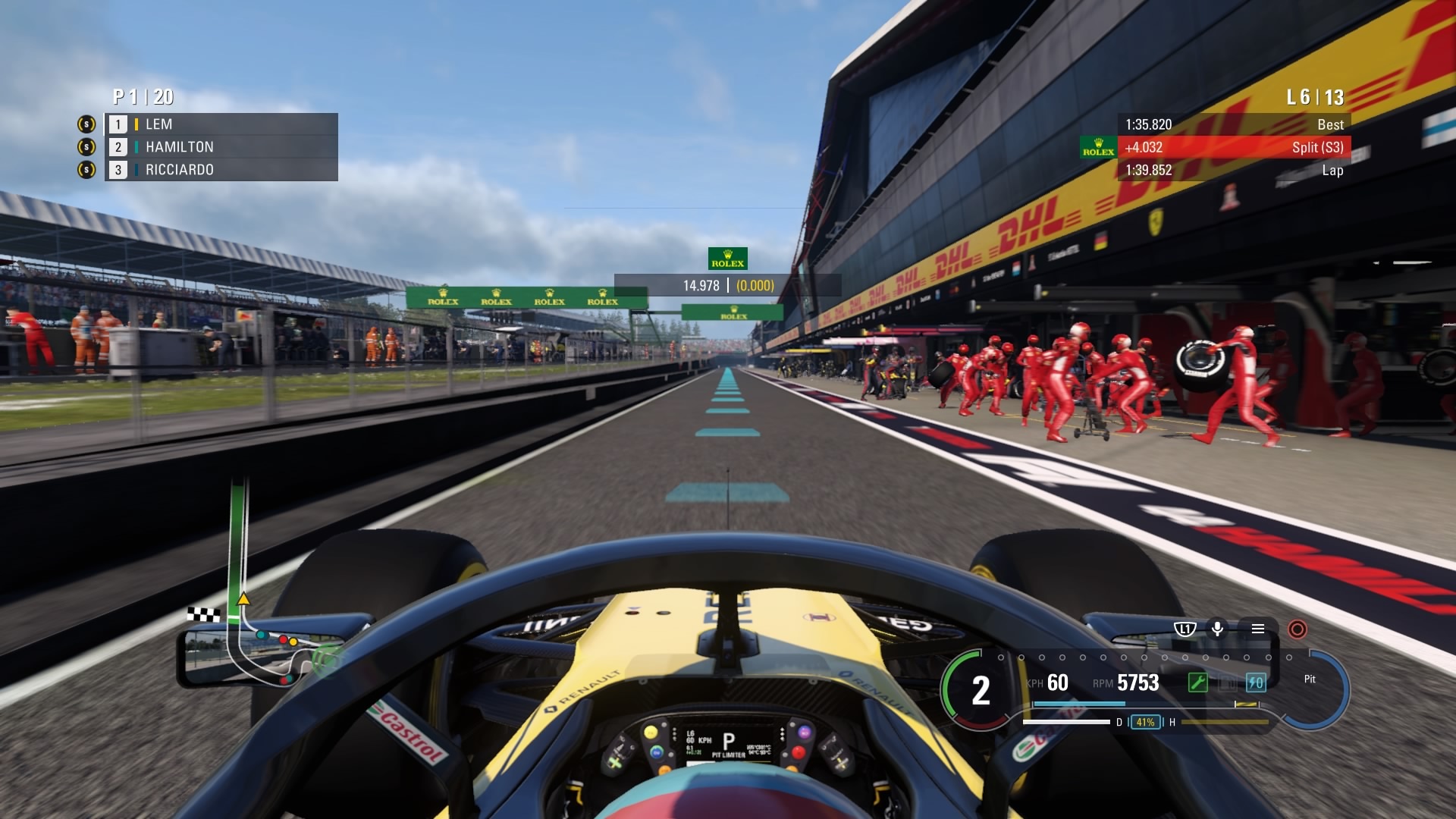 Syy treenitehtävien suorittamiseen on ratojen opiskelun lisäksi ”kehityspisteissä”. Harjoituksissa ajetuista haasteista ja kierroksista kertyy plakkariin pisteitä, joilla voi parantaa menopelin ominaisuuksia. Kärryt on jaettu neljään osa-alueeseen: kestävyyteen, raakaan voimaan, aerodynamiikkaan sekä koriin. Vähäisillä pojoilla hankitut päivityspaketit eivät tunnu isoilta, vaikka teho- ja pitolukemat väittävätkin muuta. Erityisesti kestävyyteen panostaminen tuntui Renaultilla tärkeältä, sillä alkuun köhinyt moottori sekä ikävästi natissut vaihdelaatikko saivat roimasti lisäkierroksia. Olisi kenties kannattanut Mersun Lewis Hamiltonin pohtia samaa, sillä raikulipojan kauden avaus päättyi tekniikkamurheiden vuoksi keskeyttämiseen. Myönnän hörähtäneeni räkäisesti ja sitäkin vahingoniloisemmin, sillä brittiläistä epäonnea ei oikeina viikonloppuina saa tarpeeksi kokea.