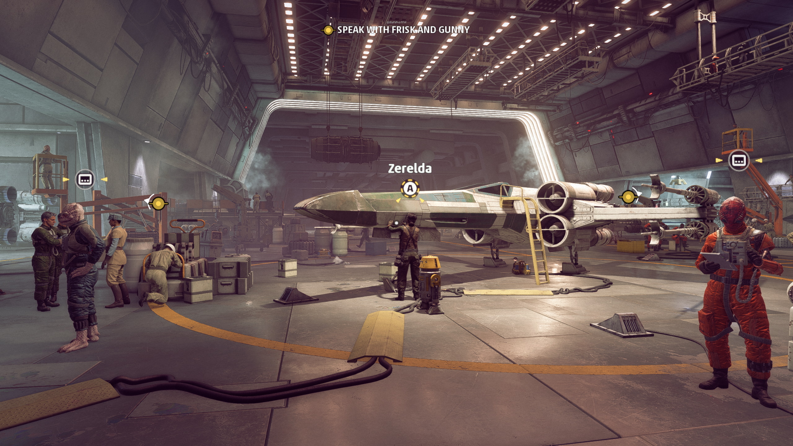 Toimeksiantojen välissä pelaaja vierailee oman puolensa tutkikohdassa, jossa kuullaan seuraavan tehtävän tarkoitus, sekä päästään mahdollisuuksien mukaan valitsemaan ja päivittämään omaa alusta. Hallissa voi myös jutella muille tiimiläisille, mutta valitettavasti pelaajan rooli jää passiiviseksi kuuntelijaksi. Keskustelut ovat NPC-hahmojen yksipuolisia monologeja, joista innokkaimmat Star Wars -fanit saavat varmasti enemmän irti.