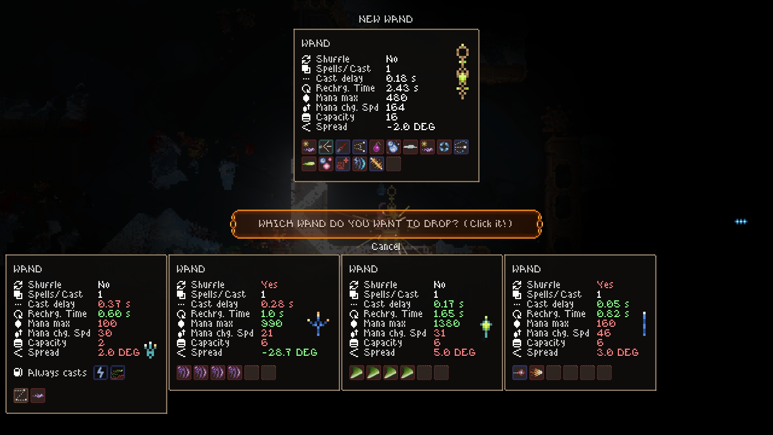 Noita on ratkiriemukas peli. Se tekee räjähtävän ensivaikutelman, mutta myös palkitsee ja viihdyttää vielä kymmenien tuntien pelaamisen jälkeenkin. Tämän valossa tuntuu ehkä hieman oudolta jos sanon perään, että en kuitenkaan nostaisi Noitaa sinne roguelite-pelien aatelistoon Hadesten ja muiden rinnalle. Noidassa on valtavasti syvyyttä ja sisältöä, mutta minun kirjoissani niiden parhaiden roguelite-pelien tunnusmerkkinä on, että vaikka sattuma heittäisi vastaan mitä, pelaaja pystyy joka ajolla raapimaan kasaan jonkinlaisen hauskan ja toimivan buildin. Noidassa näin ei aina ole, sillä moni ajo on päättynyt jo alkuvaiheilleen, koska en vain ole löytänyt mitään järkeviä taikasauvoja tai hyödyllisiä hyödykkeitä.