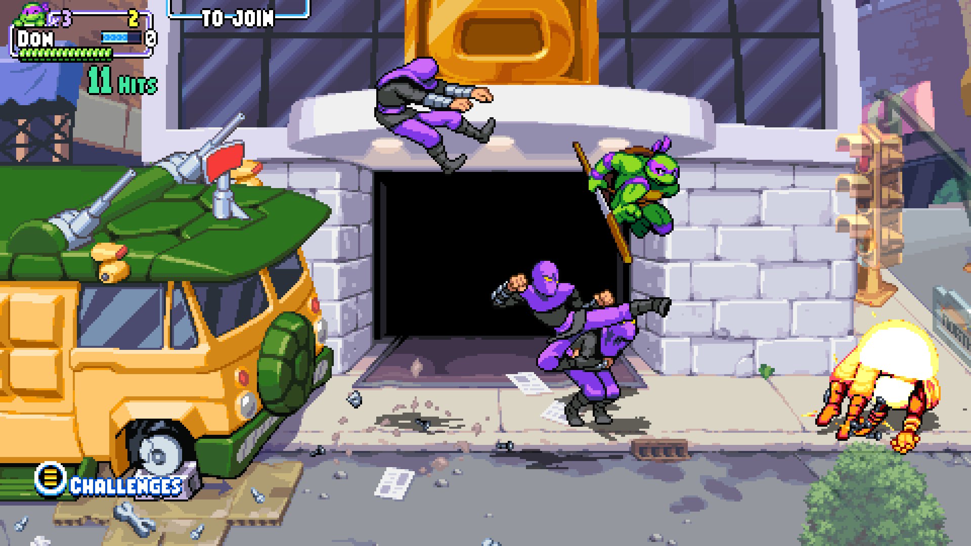 Retro-mittarit on lyöty sen verran tappiin, että ne savuavat ja vilkkuvat punaisina. Vaikka mukana on myös modernimpia mekaniikkoja, pelin sisuskalut ovat vuosikymmeniä vanhat. Retrous ei siis ole nähtävissä vain pikseleissä, vaan kaikki pelin mekaniikoista ja designista itse genreen henkivät 80- ja 90-lukujen taitetta. Hyvä puoli on, että kun on lähdetty lainaamaan, niin on sentään lainattu parhaalta: esimerkiksi aiemmin mainittu, vuonna 1991 julkaistu Turtles in Time on kärkisijoilla lähes jokaisessa TMNT-pelien listauksessa, ja pikaisen testauksen perusteella ymmärrän miksi. Aikakauden animaatiosarjasta lainattu tyyli on ikonisin versio viemärikonnista, ja tiukka toiminta pitää meiningin vauhdikkaana.