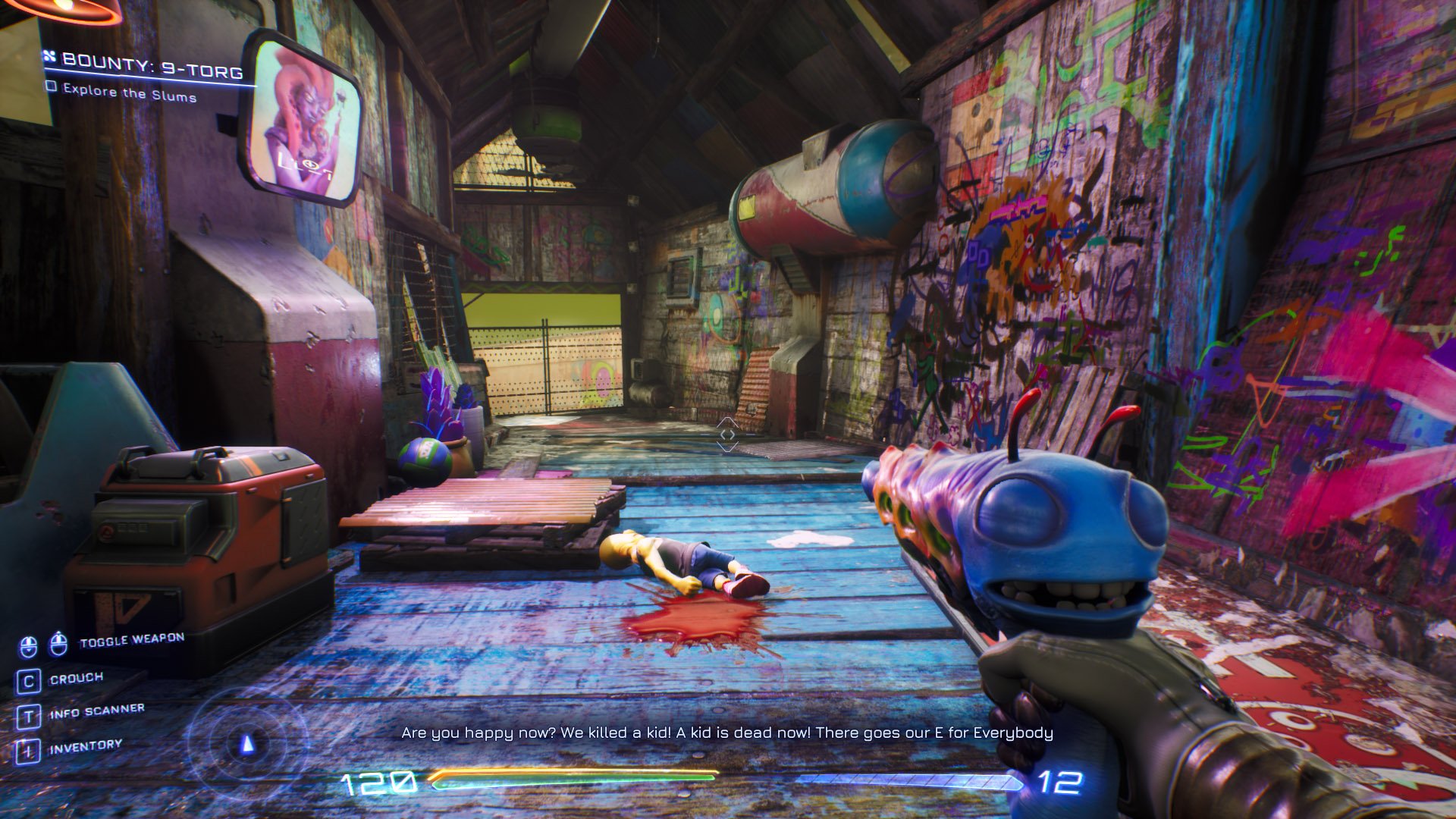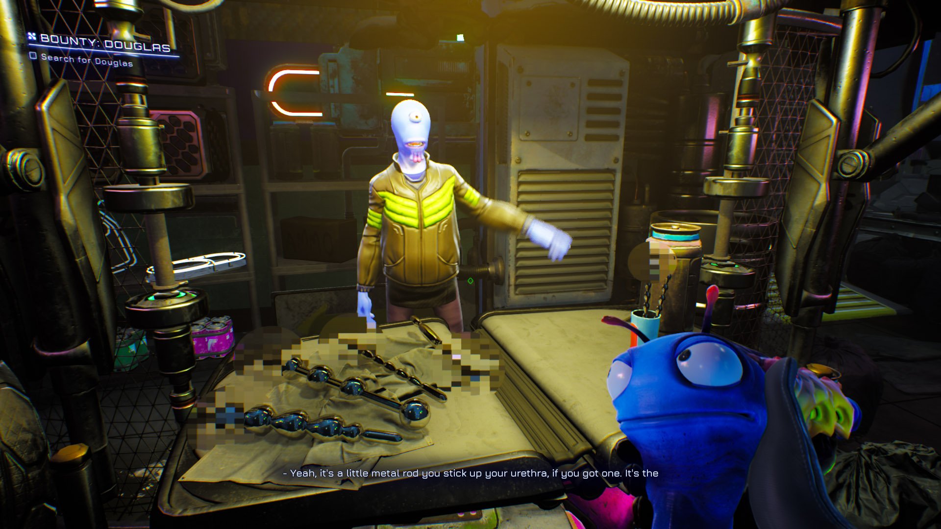 Vaikka High on Life on mekaniikoiltaan päivänselvä räiskintäpeli, painotus on niin pitkälti Justin Roilandin luotsaamassa käsikirjoituksessa, että peliä voisi hyvin kutsua vaikkapa “toiminnantäytteiseksi tarinapeliksi”. Jos olet pelaaja joka mielellään skippaa turhat täytedialogit tai selaat Instagramia välivideoiden aikana, High on Lifestä katoaa idea. Pointti on hullunkuristen sivuhahmojen, kuten eritteitään myyvien veljesten, orjuuttajalta toiselle ajautuvien halinallejen tai mustavalkoisten mafiaelokuvien tapaan puhuvien kätyreiden seuraamisessa. Vitsejä lauotaan tauotta, ja jokaista absurdia kohtausta seuraa vieläkin pähkähullumpi tilanne.