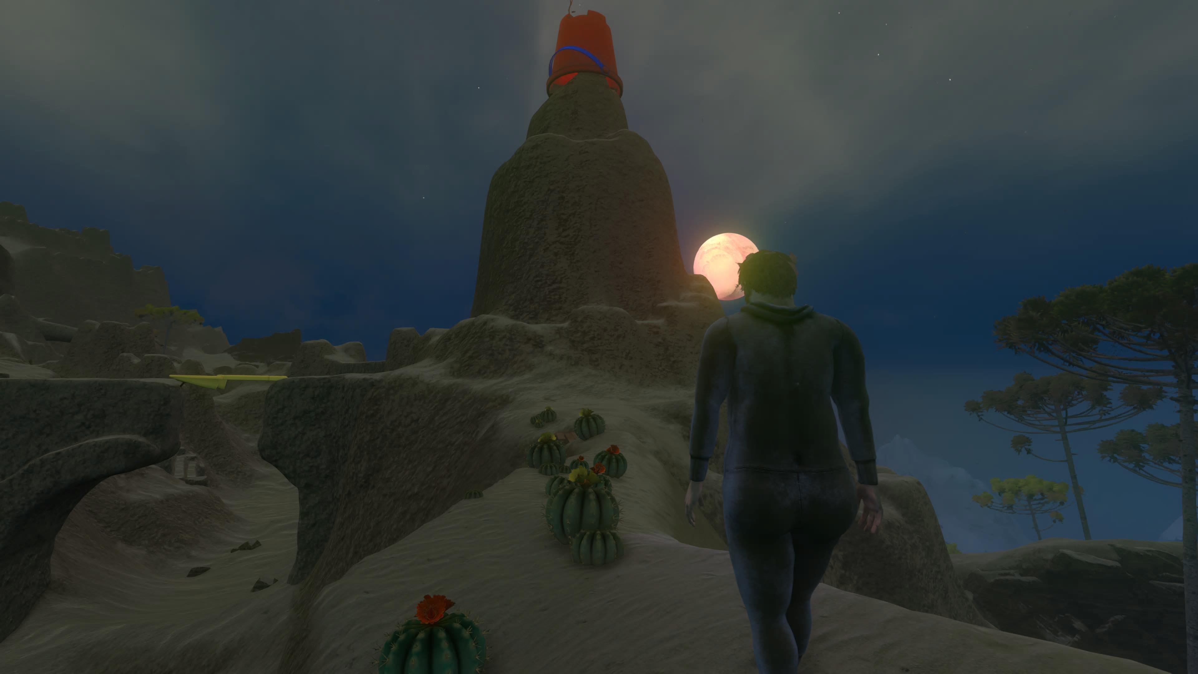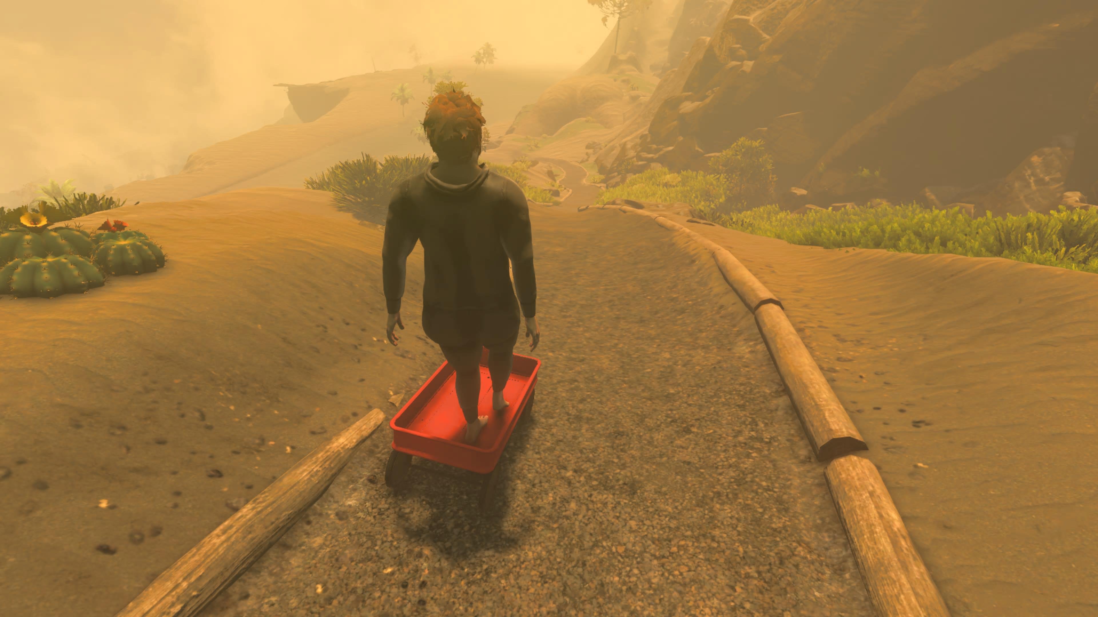Kun askeleet alkavat löytyä, on aika lähteä samoamaan. Pelaajasta riippuen suunta voi olla suoraan eteenpäin kohti seuraavaa iltanuotion tarjoamaa valonlähdettä, tai vaihtoehtoisesti voi samota ympäristöjä ylimääräisten kiipeilyhaasteiden tai eriskummallisten kavereiden toivossa. Häveliäimpiä varoitettakoon sen verran, että jos aasien ympäriinsä heiluvat penikset ahdistavat, alastomuus-täppä kannattaa laittaa asetuksista pois päältä. Kavereita ne ovat alaosattomatkin.