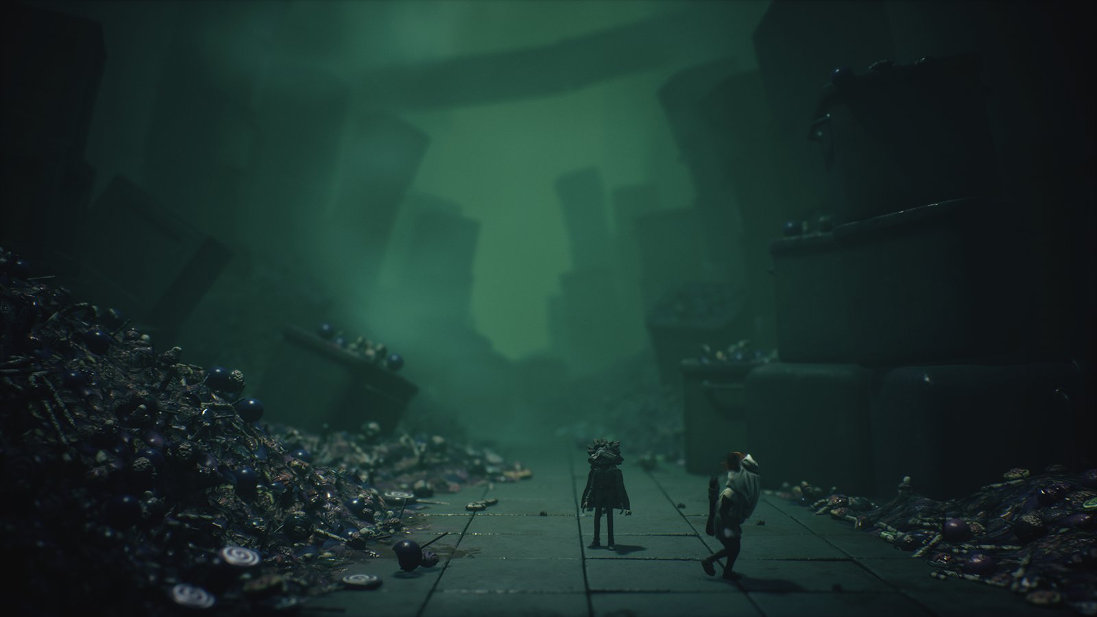 Pelin maisemissa kaikki on ruosteista, likaista, inasen iljettävää, usvaista, pölyistä, vähän vinksallaan ja niin - painajaismaista. Ray tracing -heijastukset, valot ja varjot, syväterävyys ja utuisuus luovat paikoitellen varsin realistisen surrealistisia maisemia, jotka voisivat olla vaikka animoidusta elokuvasta. Kolkkoa tunnelmaa osataan luoda sekä kuvastolla, animaatioilla että hienosti totetutulla äänimaailmalla ja visuaalisesti kolmannet pikkupainajaiset ovat erinomaisen nättejä - sillä lailla ällöllä tavalla. Pelinkehittäjät ovat viljelleet sinne tänne myös kivoja pikku animaatioita ja ottaneet huomioon asioita, joita pelaaja saattaa hetken mielijohteesta testailla - tälläinen viilailu nostaa pisteitä omalla asteikollani.