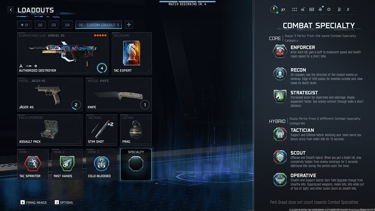 Aseiden ja kykyjen muokkaus on melkoinen soppa ja opeteltavaa riittää. Perk-kykyjä voi valita yhteensä kolme, joita yhdistelemällä avautuu specialty-kyky. Specialty puolestaan antaa hahmolle uutta boostia sotimiseen. Tarjolla on mm. hetkellistä näkymättömyyttä, boostia juoksemiseen ja terveyteen sekä bonuspisteitä. Perk-kykyjen lisäksi hahmon ominaisuuksia voi muokata wildcardilla, joka puolestaan tarjoilee esimerkiksi ylimääräisitä kranaatteja tai antaa pisteitä aseen lisähärpäkkeiden laittamiseen.