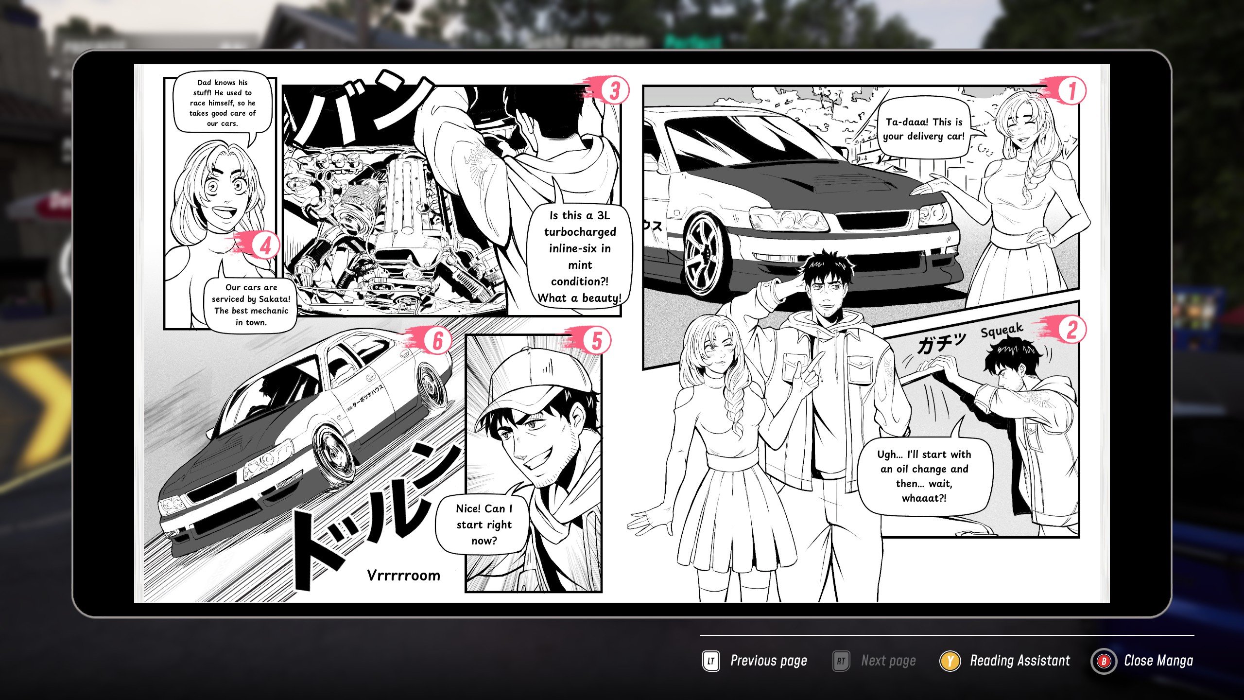 Pelaaja on ulkomaalainen nuorukainen, joka ajautuu puolivahingossa mukaan mutkaisilla vuoristoteillä käytäviin epävirallisiin sivuluisutuskisoihin ja päätyy sitten perustamaan oikein oman tiiminsäkin. Tarinaa kuljetetaan ihan tyylikkäillä manga-sarjakuvilla, joita vieläpä luetaan oikein- eli väärinpäin, siis alusta loppuun ja oikealta vasemmalle. Kisojen voitoista saa rahaa, joilla ensin ostetaan vaikkapa lakiteknisesti-riittävän-erilainen Toyota ja tuunataan siitä kunnon driftihirviö. Ostettavaksi on tosin tarjolla myös oikeita automalleja muun muassa Subarulta ja Nissanilta – ja erityisen makeana juttuna pelissä pääsee testimielessä koheltamaan myös Hyundain villillä Insteroid-sähköautokonseptilla. Sen rajaton vääntö tekeekin kumin polttamisesta helppoa. Kiiihdytyskisoja ja perinteistä rata-ajoakin on kyllä mukana, mutta pääpaino on sudittelussa.