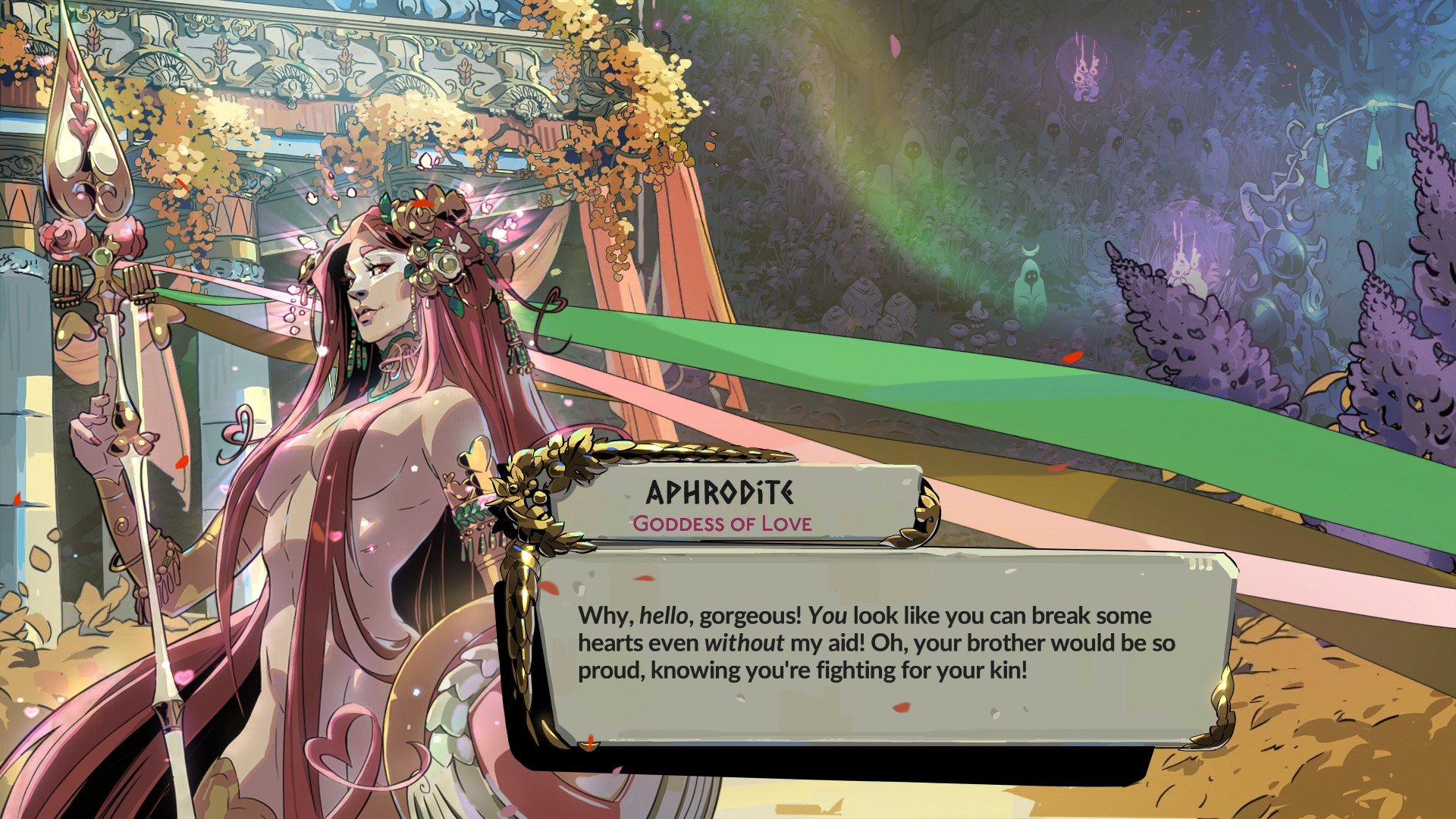 Hiljalleen avautuva tarina antaa jälleen mielenkiintoisen näkökulman kreikkalaiseen mytologiaan. Tuhansien vuosien takaisia taruja ei kuitenkaan seurata orjallisesti, vaan tarinassa otetaan rohkeasti vapauksia. Mielenkiintoiset ja moniulotteiset hahmot kuljettavat palasista rakentuvaa tarinaa eteenpäin, eikä peli pelkää revitellä kun on sen aika. Tomuisten tarustojen sijaan Hadeksen mytologinen maailma on täynnä hedonismia, väriä ja flirttiä!