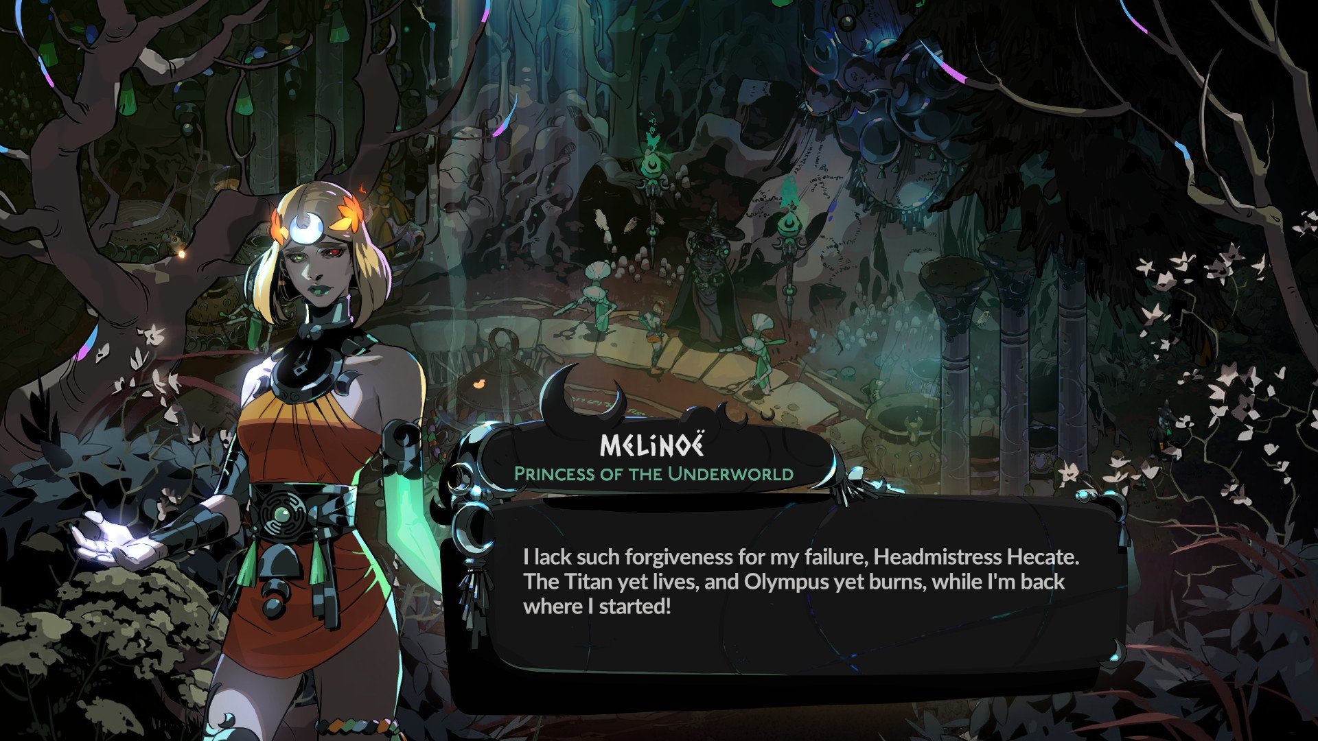 Haasteeseen vastaa Melinoe, Hadeksen toinen lapsi – ja Kronoksen lapsenlapsi – joka pelastettiin sylivauvana titaanin vallankaappauksen keskeltä. Risteysten jumalatar Hekate on kouluttanut Melinoea noidaksi lapsuudesta lähtien vain yhtä tehtävää varten: Kronoksen on kuoltava.