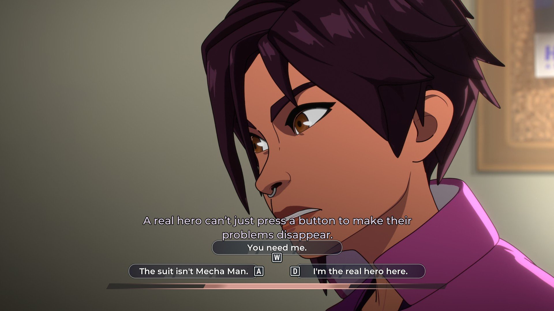 Surkuhupaisten pikkuroistojen käyttäminen hahmokatraana on nerokasta: supervoimista huolimatta tarinaan syntyy automaattinen altavastaaja-asetelma, kun pelaajan täytyy koulia Ö-mapin hahmoista Los Angelesia suojelevia sankareita. Tarina seuraa elokuvista tuttuja kliseitä, mutta hahmot ovat sen verran moniulotteisia ja vitsit sen verran hauskoja, ettei toisto haittaa tippaakaan. Erityisesti animoinnin ja ohjauksen taso on erinomaista: lukuisten huumoripelien ongelmana on ajoituksen ja editoinnin heikko taso, mutta Dispatchin visuaaliset vitsit ja tarinankerronta ovat ajoittain jopa Edgar Wrightin kaltaisen mestariohjaajan tasolla. En tiedä, onko peleissä juuri koskaan nähty yhtä tiukkaa komediakäsikirjoitusta.