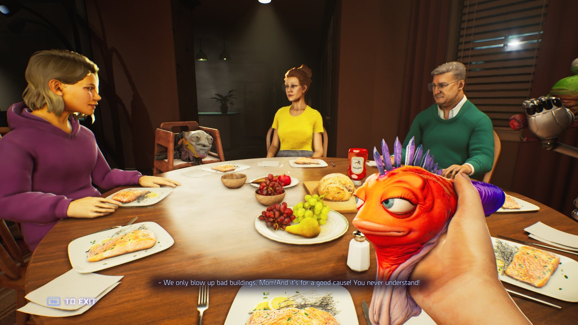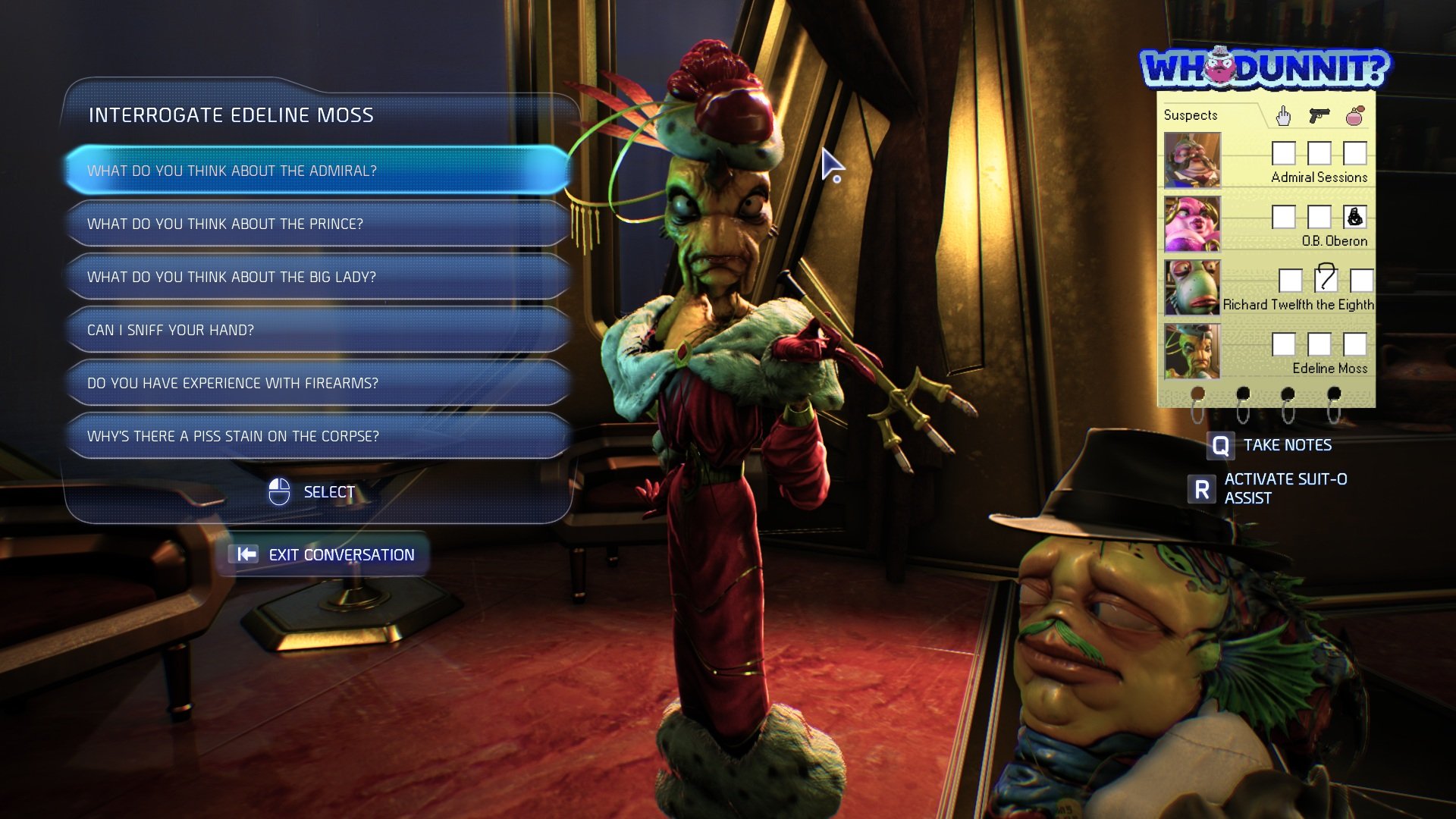 Tarinapuoli on siis entistä heikommilla antimilla, mutta entäpä sitten pelimekaniikat? High on Life 2.ssa on muutamia erinomaisia kohtauksia, jotka nousevat jopa edellisen pelin yläpuolelle: esimerkiksi suljetun huoneen murhamysteeri on yksi suurimpia kohokohtia, joka vaihtaa lattean räiskinnän salapoliisityötä vaativaan tutkiskeluun.