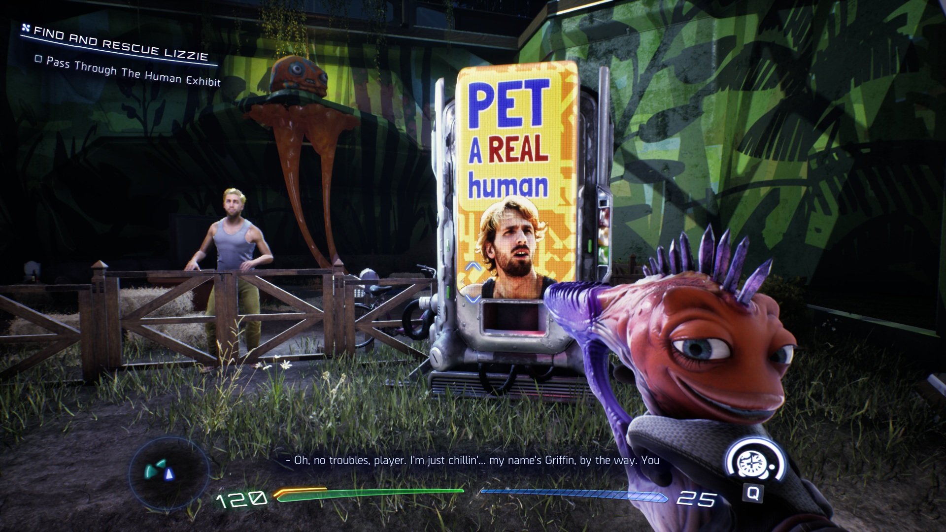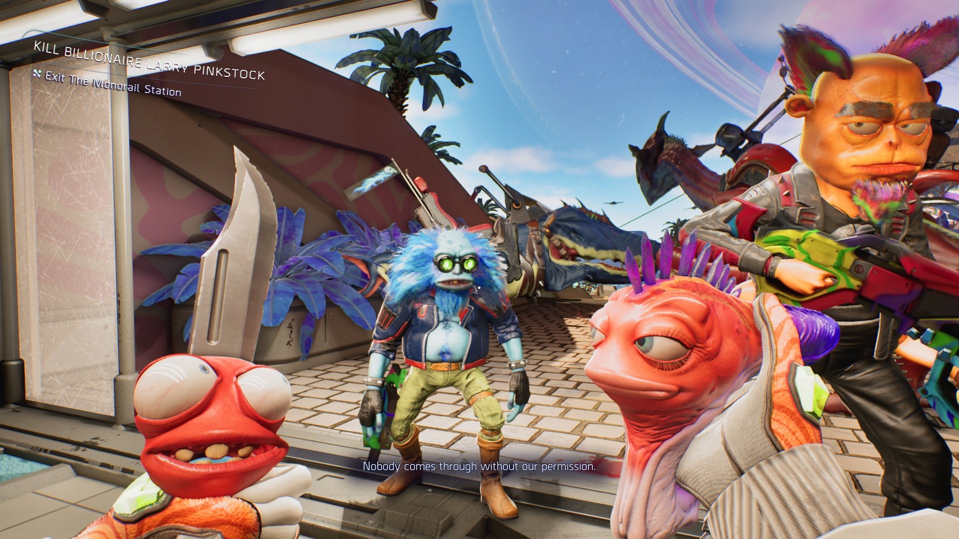 Vaikka aserepertuaarin uudet sivuhahmot – kuten keski-iän kriisissä pyöriskelevä pariskunta Travis ja Jan, tai ulkoavaruuden Robin Hoodia leikkivä jousipyssy Bowie – ovat hyvä lisä tapahtumia kommentoivien kaverusten kööriin, en saanut luotua oikein minkäänlaista sidettä uusiin hahmoihin. Muistan rupatelleeni viime pelissä jatkuvasti eri hahmojen kanssa niin tehtävien välissä kuin niiden aikana, mutta tällä kertaa halusin lähinnä pyrhältää tavanomaisesta toimintakohtauksesta toiseen, että lopputekstit saapuisivat mahdollisimman nopeasti. Tajusin kunnolla miten vähän välitinkään High on Life 2:n tarinasta, kun pelin lopussa suljin pelin vaihtamatta edes viimeisiä sanoja kenenkään kanssa.
