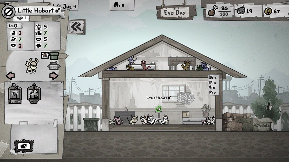 Kaikki alkaa niistä kissoista, jotka joko saapuvat pelaajan taloon satunnaisten ominaisuuksien kera, tai perivät niitä satunnaisesti vanhemmiltaan. Pelaaja saa valita kullekin seikkailulle neljä kissaa valikoimistaan, mutta jo seikkailleita kissoja ei voi lähettää maailmalle uudelleen. Ne saavat joko pyöriä nurkissa lisääntymässä ja syömässä loppuikänsä, tai ne voi lähettää viemärin kautta erinäisille kissoja himoitseville kaupunkilaisille.