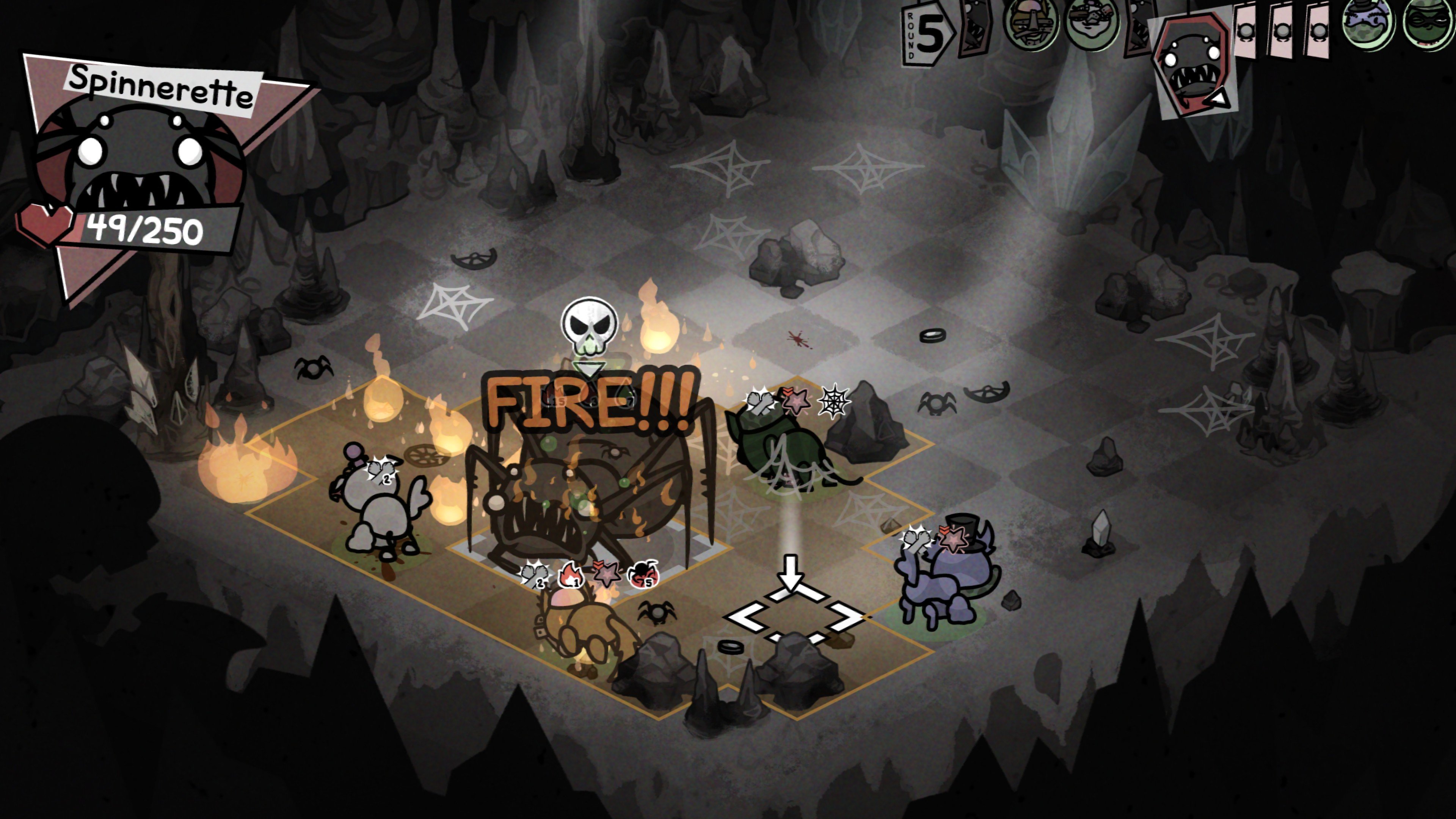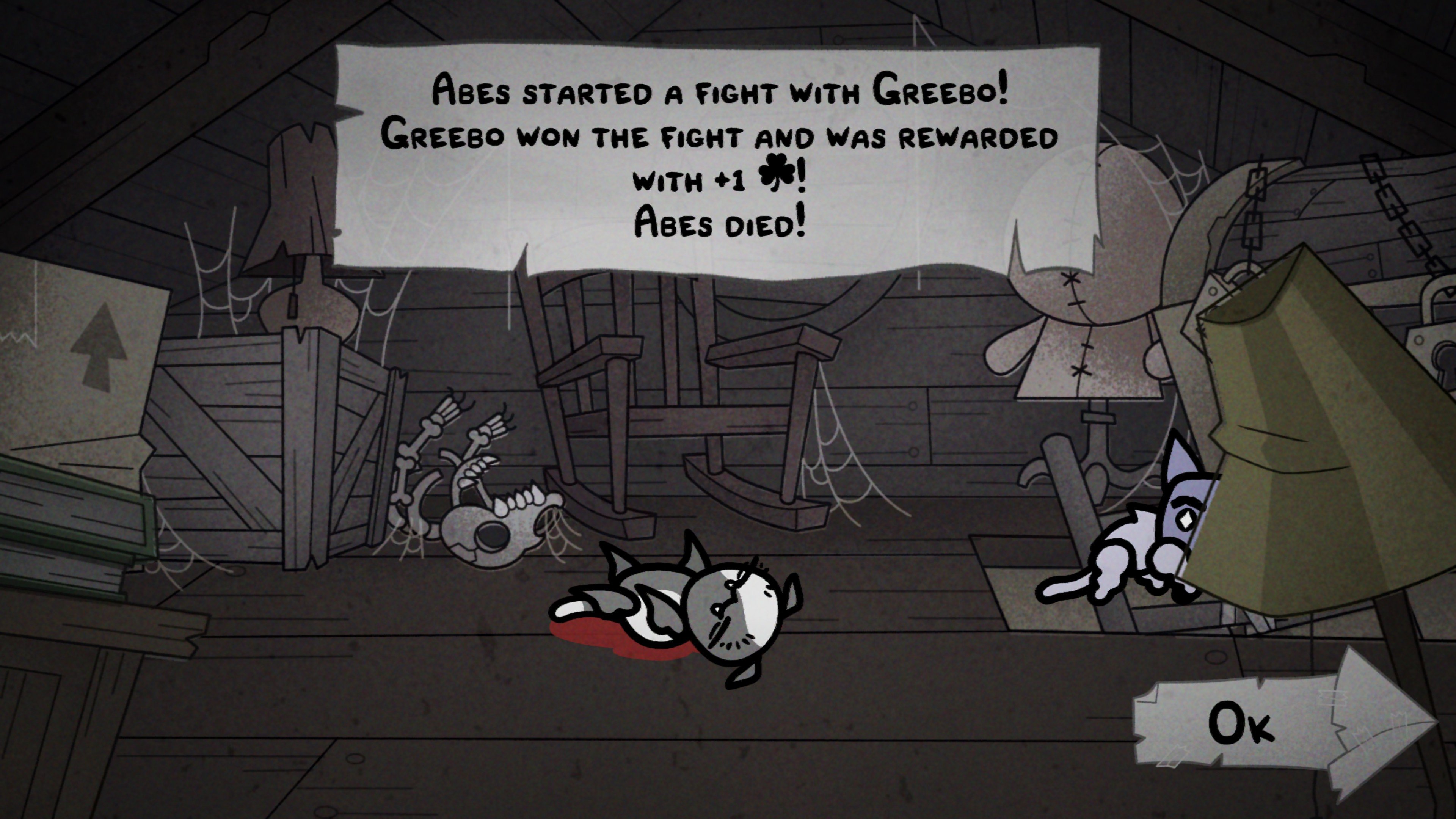 Pelin hahmonkehitys on miltei puhtaan satunnaista, koska jokaisen taistelun jälkeen yksi kissa saa uuden kokemustason, minkä myötä pelaaja saa valita yhden kolmesta satunnaisesta kyvystä. Jos arpaonni on puolella, näin voi saada aikaan murhaavan tehokkaita komboja. Eräällä pelikerralla metsästäjäni sai alussa kyvyn, joka teki osuessaan massiivista vahinkoa, mutta osui vain 30% ajasta. Hyödytön yksinään, siis. Mutta ensimmäisen tasonsa myötä metsästäjä oppi merkitsemään kohteita, minkä jälkeen hyökkäykset eivät enää voineet mennä ohi. Kun sain vielä pian tämän jälkeen passiivisen kyvyn, joka jokaisen tapon jälkeen palautti metsästäjän manapisteet, olin rakentanut tappokoneen, joka pystyi kirjaimellisesti putsaamaan koko pelipöydän yhdessä vuorossa.