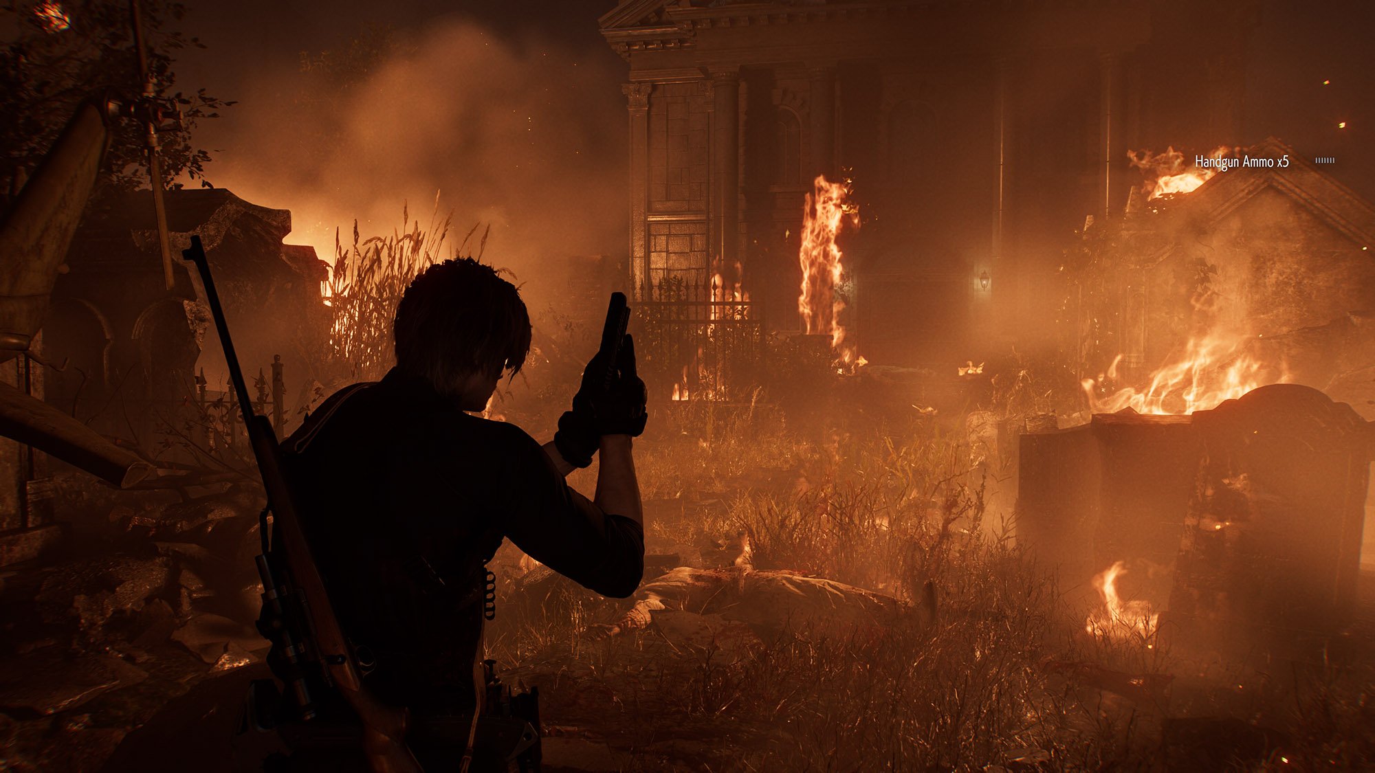 Leonin osiot taas ovat kuin jatkokehitelty versio Resident Evil 2:n tai 4:n uusintaversioista. Olan takaa kuvattua kolmannen persoonan toimintaa, jossa Leon tykittää kumoon kymmeniä zombeja moninaisilla aseillaan.
