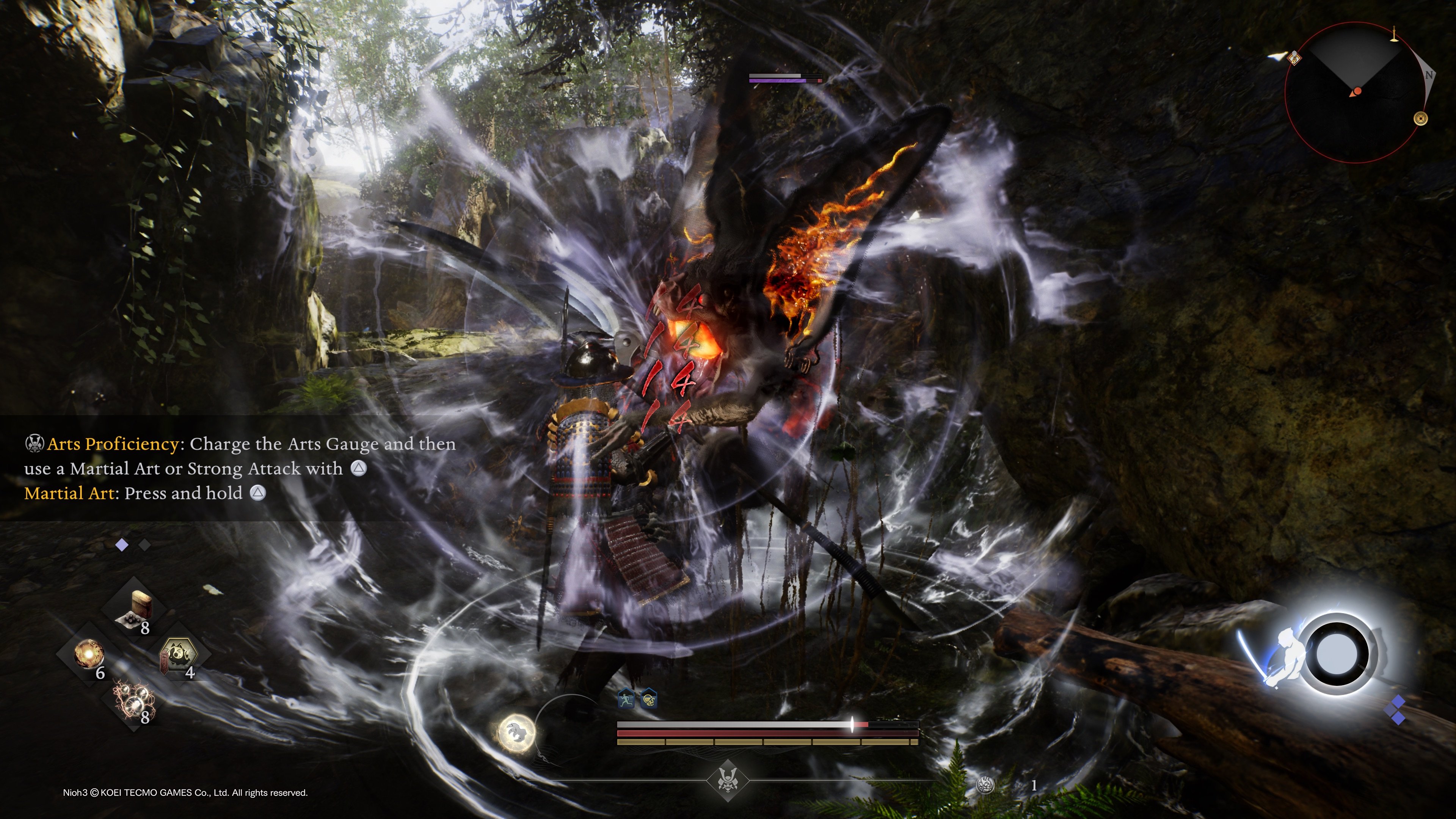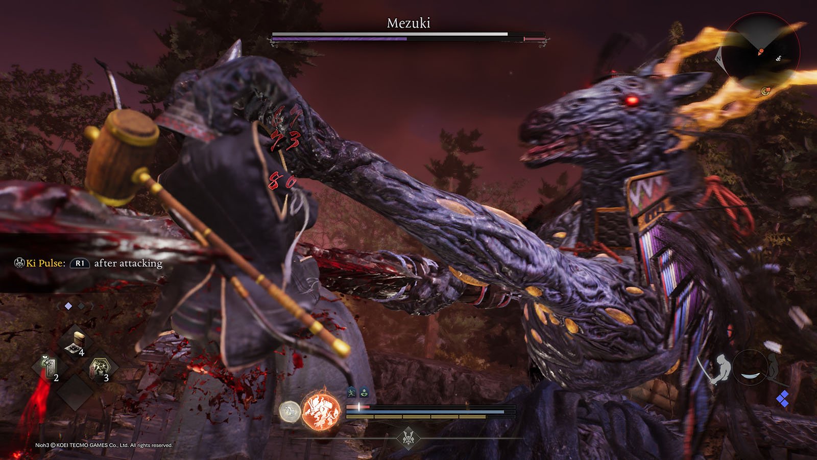 Nioh 2:n tavoin eräs keskeinen mekanismi on niin kutsuttu yokai-vastalyönti. Miltei kaikilla vihollisilla on pelaajan kerrasta tappavia superhyökkäyksiä, joista varoitetaan punaisella loistolla. Tarkoituksena olisi tehdä tietty vastaisku loiston aikana, jolloin vihollinen horjahtaa ja on altis kuritukselle. Ongelmana on, että merkittävän osan ajasta tämä ei vain toimi. Animaatiot kyllä pyörivät, mutta vastaisku ei osu, vaan turpiin tulee sen läpi. Ja samanlaista naputettavaa löytyisi muualtakin. Ja ei, kyse ei ole vain siitä, että vanhalla iälläni osaa enää pelata, koska Nioh 3 -keskustelussa useat muut olivat myös huomanneet saman.