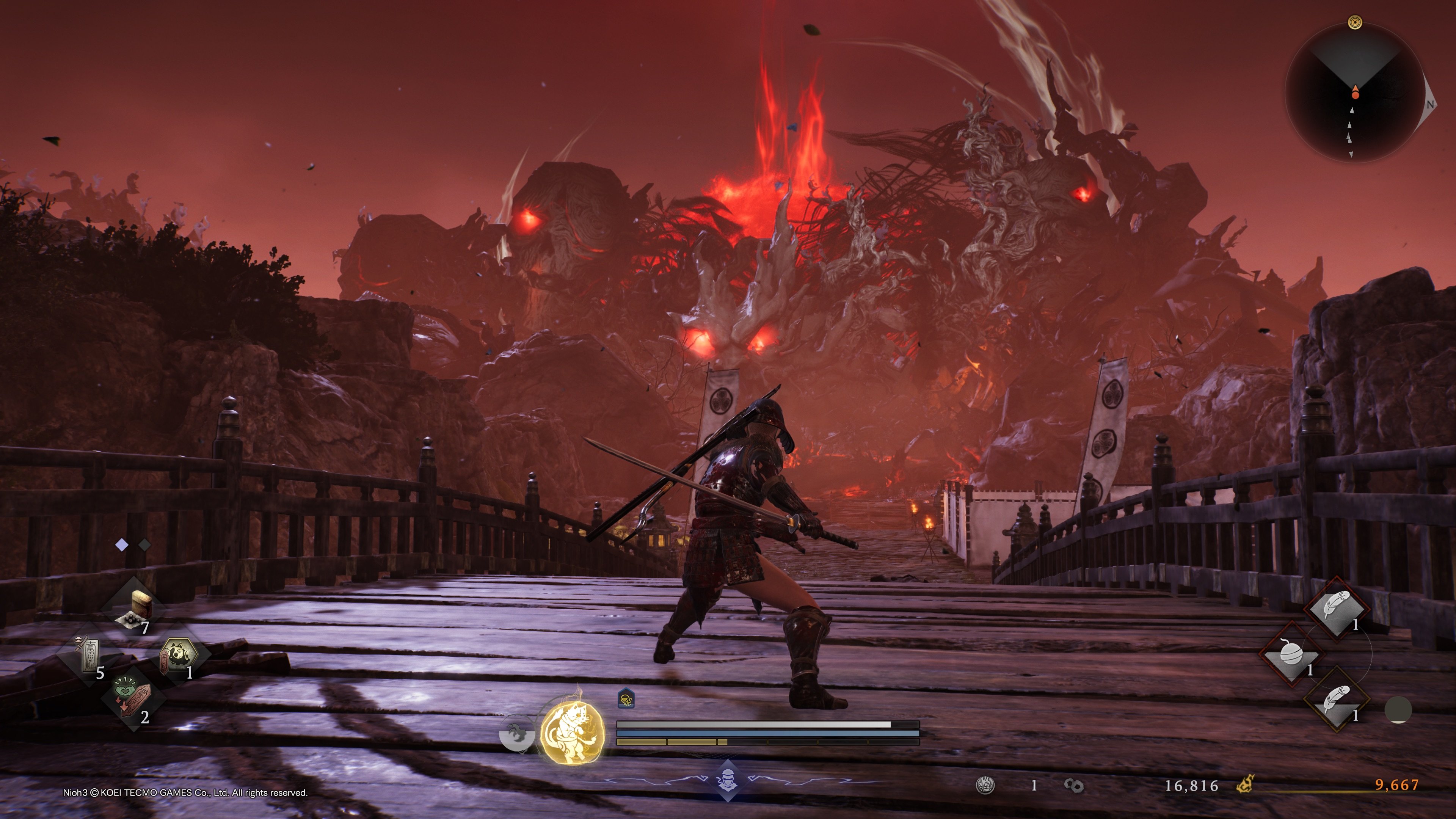 Tuloksena on pelikokemus, joka tuntuu liian vaikealta, ja vieläpä väärällä tavalla vaikealta. Ymmärrän toki, että jos tehdään peli tyypeille, jotka ovat pelanneet sarjan aiemman pelin jo läpi, oletuksena on, että vaikeustasoa nostetaan, jotta nämä tyypitkin saavat pelistä haastetta. Mutta nyt tuntuu siltä, kuin Team Ninja olisi tasapainottanut pelinsä vain niitä tyyppejä varten, jotka ovat tahkonneet Nioh 2:ta tauotta sen julkaisusta lähtien. Ja mikäs siinä, jos heillä on kivaa, niin hienoa heidän kannaltaan. Mutta kun minäkin joudun soulsborne-fanaatikkona toteamaan, että nyt meni vähän överiksi, vähänkään kasuaali pelaaja tuskin saa pelistä hirveästi irti.