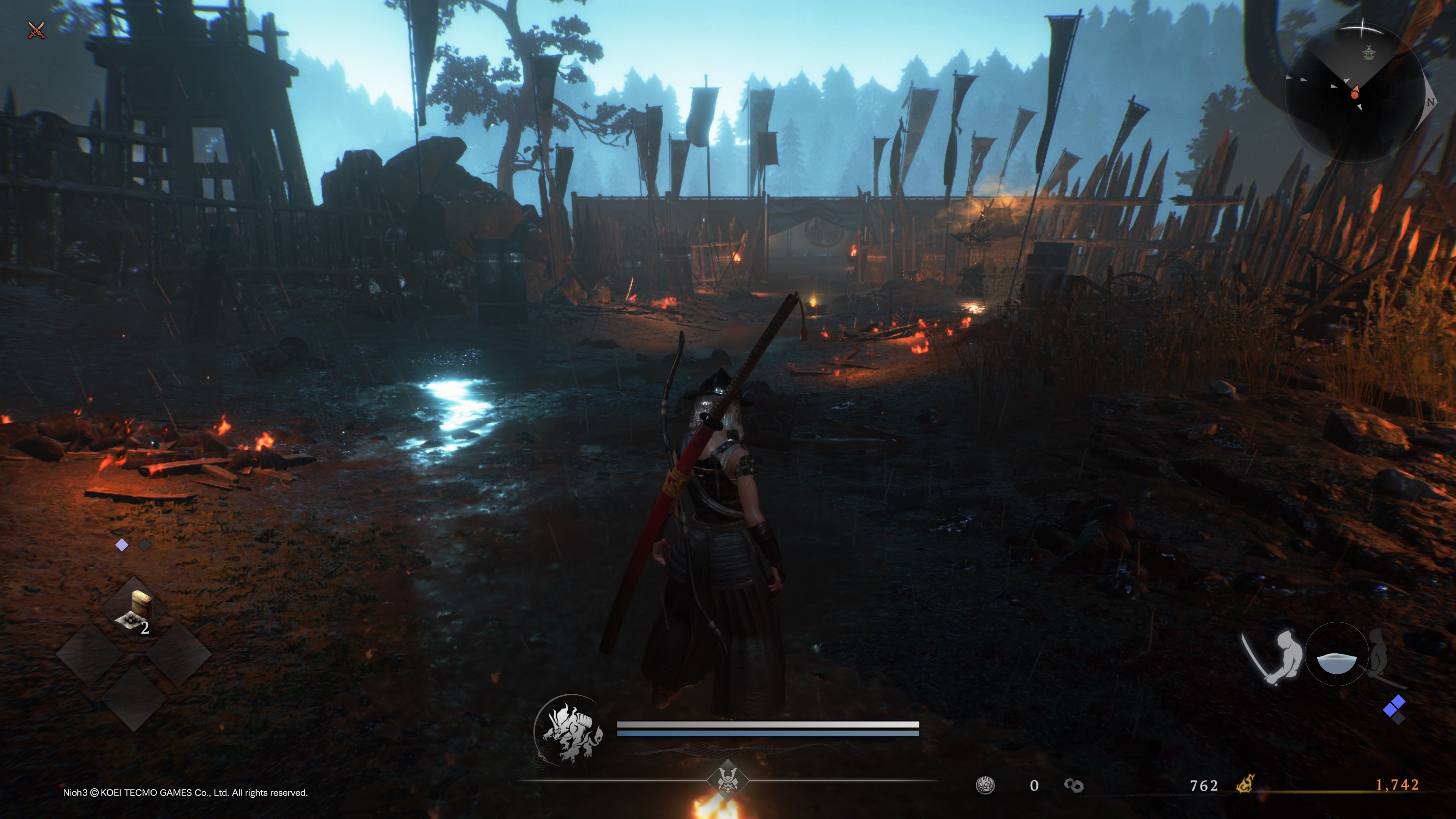 Suurikokoiset alueet tuovat mukanaan pienen ongelman: siellä suurella alueella pitäisi olla riittävästi sisältöä, jotta homma tuntuisi mielekkäältä. Ja tässä Nioh 3 kompuroi ensimmäisen kerran. Maailmaan on kyllä sijoitettu minipomoja, valloitettavia linnoituksia ja pieniä kerättäviä juttuja, mutta se kaikki tuntuu hyvin pintapuoliselta.