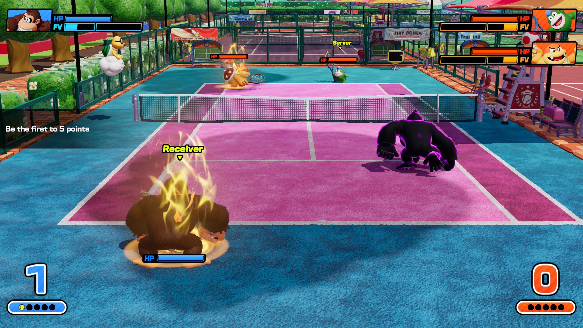 Viimeksi Mario-palloilun V2.fi:ssä arvosteli Miikka, joka kyllä piti Mario Tennis Acesista ihan tarpeeksi (Switch-arvio), mutta kritisoi sitä jyrkästä oppimiskäyrästä. Noh, Mario Tennis Feveriä ei voi ainakaan siitä syyttää, ainakaan jos aloittaa sen tarinatilasta, johon minäkin ensimmäisenä hölkyttelin.