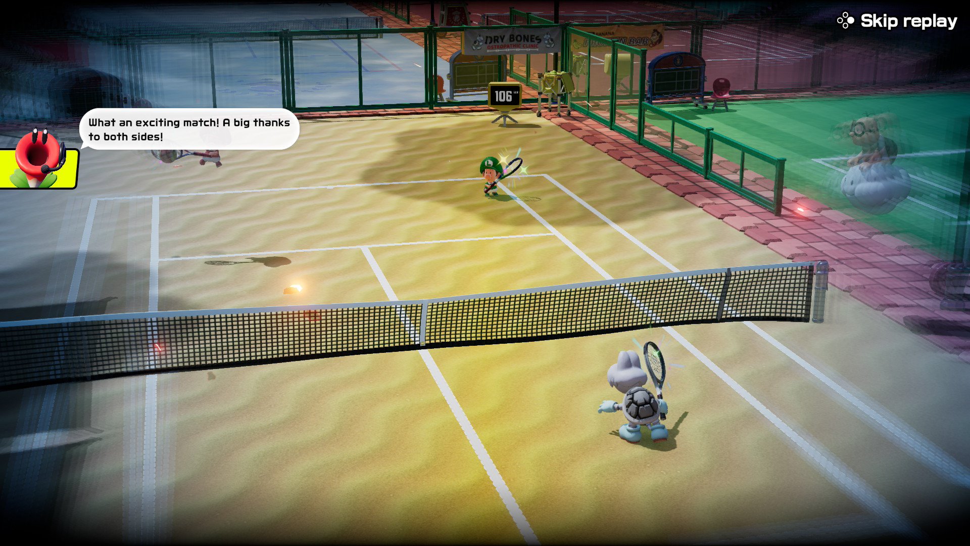 Se kuitenkin täytyy sanoa, että tenniskouluunkin on ripoteltu kivoja yksityiskohtia sinne tänne ja kaksituntisen aikana pelaajan taidot oikeasti kehittyvät. Warion ja Waluigin koomiset kevennykset ja puhuvien kukkien pölinät (ensimmäisellä parilla kerralla) tuovat vähän lisämakua ja varsinkin ensimmäistä kertaa tennispeliä pelaaville hissukseen etenevästä aloituksesta on varmasti enemmän iloa.