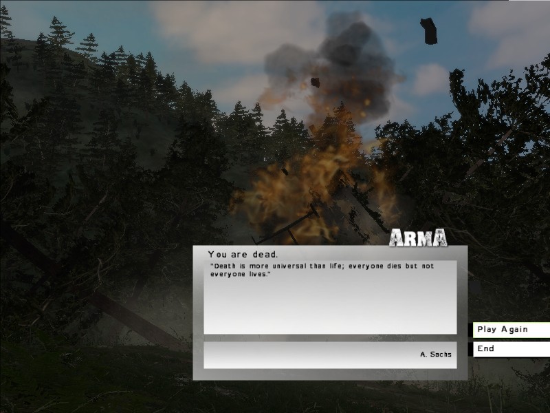 Kun vuoden 2005 alussa aloitin peliarvostelijan urani, heti ensitöikseni esitin työnantajilleni toiveen, josko saisin arvostella Operation Flashpoint kakkosen, jahka se joskus ilmestyy. Kakkososaapa ei sitten koskaan tullutkaan, koska ykkösosan julkaisija Codemasters omi katkeran riidan tuloksena pelin nimen itselleen. Nyt vuosien pitkän odotuksen jälkeen tsekkiläinen Bohemia Interactive on saanut valmiiksi kunnianarvoisan Fläsärin jatko-osan, joka tottelee täällä päin maapalloa nimeä ArmA: Armed Assault (Amerikassa ArmA: Combat Operations). Lienee tosin hieman harhaanjohtavaa kutsua peliä valmiiksi, sillä sitä se ei todellakaan vielä ole, huolimatta siitä, että peli löytyykin jo kauppojen hyllyistä. Tämä tuskin oli mikään yllätys kenellekään OFPin kanssa aikoinaan taistelleelle. Kyseinen peli kun sai osakseen korjaustiedostoja vielä vuosia julkaisunsa jälkeenkin.