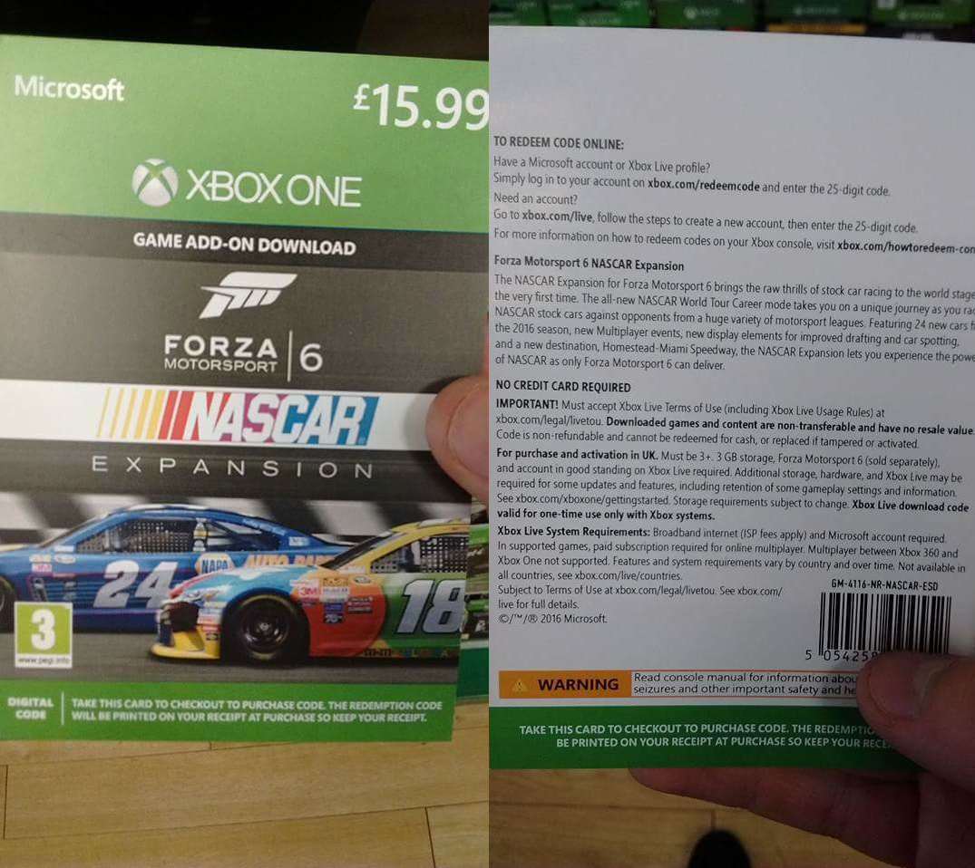 Digitaalisen koodin sisältävä lippulappunen kertoo paketin tarjoavan 24 menopeliä, upouuden NASCAR World Tour -uran sekä tuoreita moninpelitapahtumia.