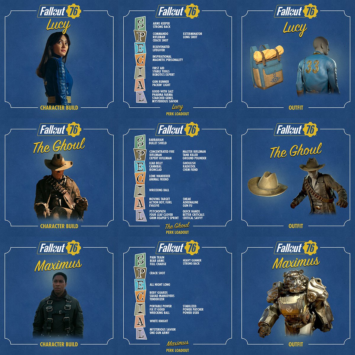 Play the part! Some suggested builds in #Fallout76 to help you create your favorite @falloutonprime character in-game.
