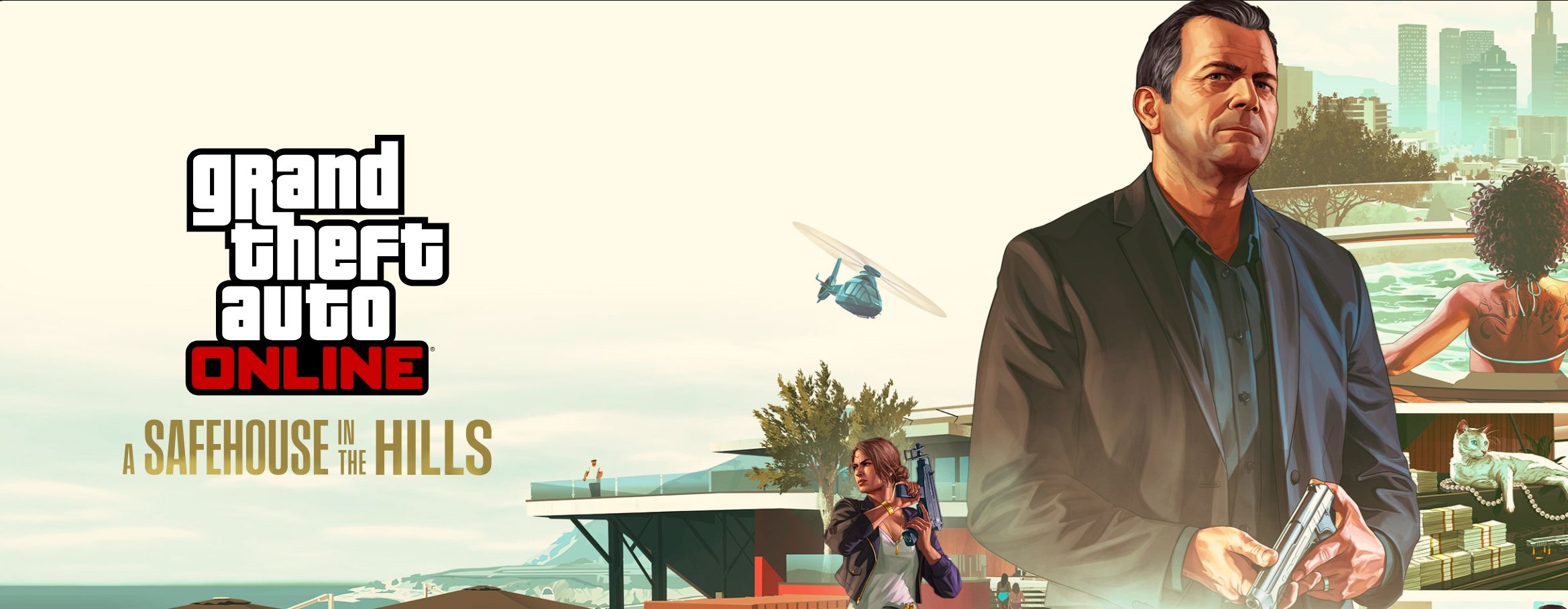 GTA Onlinen uusin suuri päivitys A Safehouse in the Hills on nyt saatavilla, tuoden peliin kolme ylellistä kartanoa – Richman Villan, Tongva Estaten ja Vinewood Residencen – joissa on muun muassa AI-avustaja, 20 ajoneuvon autotalli, oma helikopterikenttä, ajoneuvopaja, juhlaominaisuuksia, turvatiimi, lemmikkipaikat sekä runsaasti sisustus- ja toimintalisäyksiä. Päivitys lisää myös kolme uutta ajoneuvoa (Pfister X-treme, Übermacht Sentinel XS4 ja Grotti GT750), uuden KnoWay Out -tehtäväsarjan GTA$400 000 viikkopalkinnolla, täysin uuden Rockstar Mission Creatorin omien tehtävien tekemiseen, sekä GTA+ -jäsenille etuja kuten varhainen pääsy Vapid FMJ MK V:hen ja uusia ajoneuvopäivitysmahdollisuuksia. Lisäksi mukana on uusia satunnaistapahtumia, emoteja, Lock-On Jammer -tuki 50 ajoneuvolle ja lupaus lisääntyvästä sisällöstä tulevien viikkojen aikana.