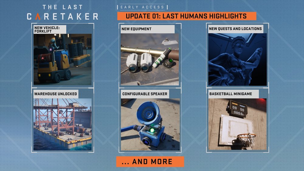 Uusia tehtäviä tarjotaan kolme kappaletta, jotka kuljettavat pelaajan robottia myös uusille alueille. Pelimaailmaa on samalla elävöitetty muun muassa koripallo-minipelillä, ajettavalla trukilla, pimeänäkölaseilla sekä kovaäänisillä. Päivityksen yhteydessä tiimi myös kertoo, että The Last Caretaker tulee olemaan Steamin (pian alkavissa) joulualennuksissa, jossa hinnasta tiputetaan 15%. Tarkan markan vartijoiden kannattaa siis olla valmiina, kun alennukset alkavat.