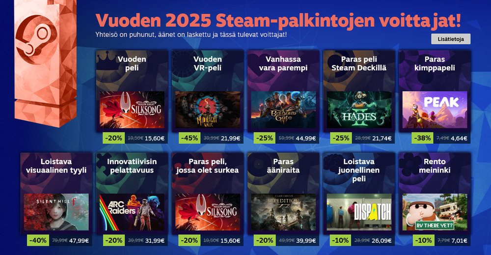 Vuoden 2025 Steam-palkintojen voittajat: