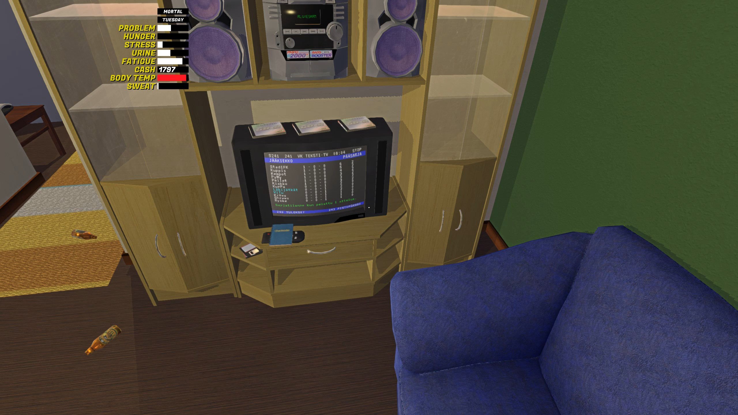 Rojola teki sen taas – ja hullusti tekikin. Amistechin pelintekijäparin luova omituisuus kukkii ihanasti My Winter Car –pelissä, joka jatkaa My Summer Carin renkaanjäljillä – mutta tönäisee hulluusvaihteen entistä kovemmille kierroksille. MWC ei ole hauska peli. Se ei ole aina edes viihdyttävää. Joskus se on päällekäyvän tylsää (kun istut sakkojasi pois putkassa), pelottavaa (kun ajat humalassa öisellä pikkutiellä) ja rasittavaa (kun toistat jotain toimintasarjaa). Se on myös ikävän ihmiselämämäinen kokemus – lähes elämäsimulaattori. Syöt, kuset, käyt töissä, tienaat rahaa, käytät rahaa itsesi ylläpitoon ja pelillisiin tavoitteisiin, nukut, syöt, kuset. Vain paskominen puuttuu.