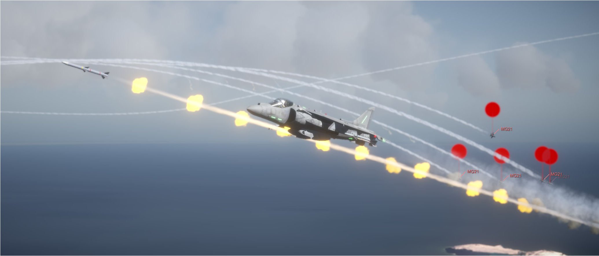 Yhdysvaltain merijalkaväen käyttöön suunniteltu AV8B Harrier II on brittiläisen Hawker Siddeley Harrier -hävittäjän viimeisin versio. Konetyyppi on yhä käytössä Italiassa ja Espanjassa. Pystysuoraan nousuun ja laskuun kykenevä monitoimihävittäjä on CAP2-simulaattorin pääosassa.