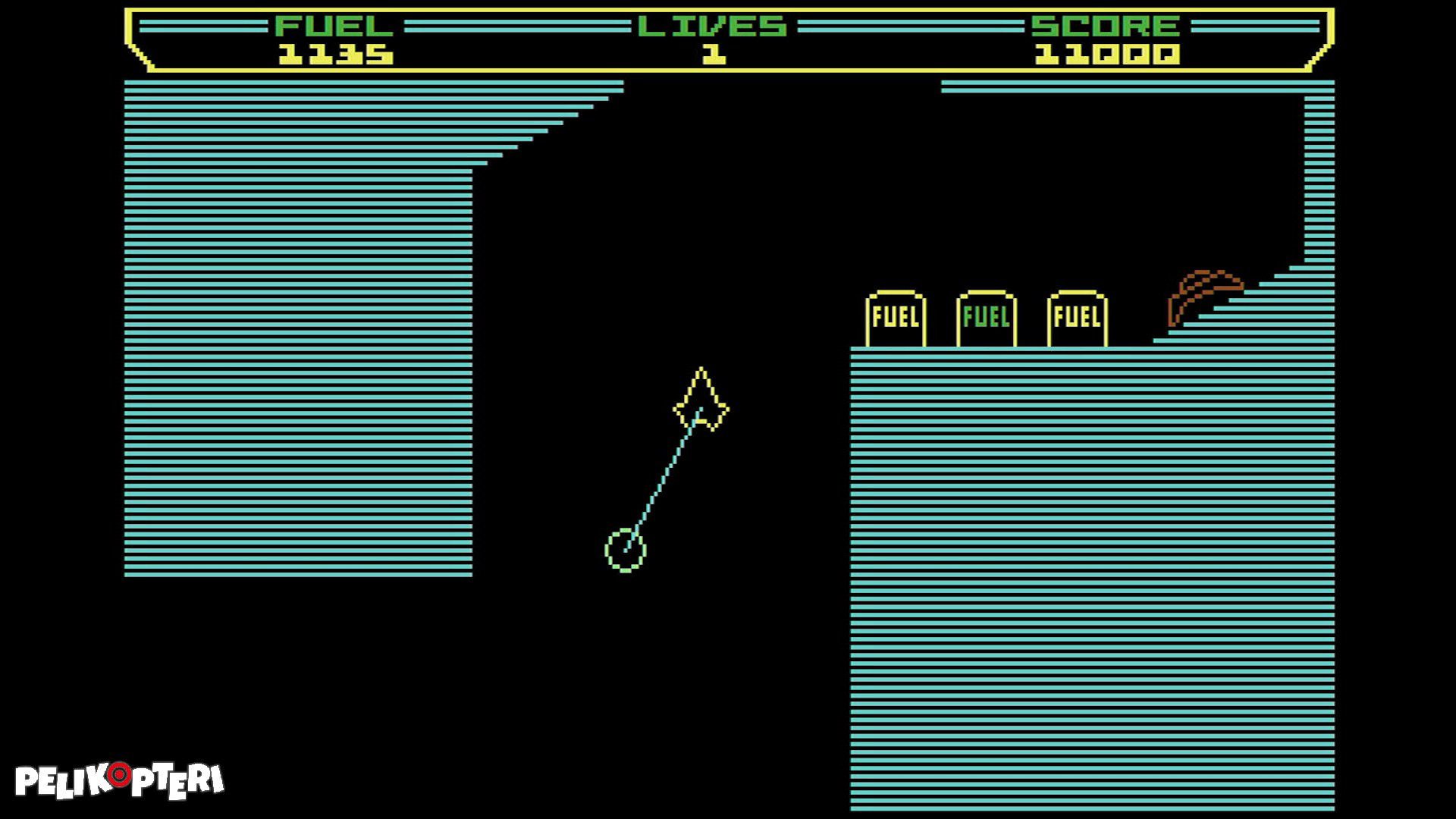 Aikoinaan halpapelinä julkaistu Thrust on tarjonnut vastinetta rahalle. Herkullisesti Atarin Gravitar-kolikkopeliä lainaillut painovoima-fysiikka-simulaatiolentely oli ihanan yksinkertainen, silti niin kovin haastava taitopeli. Pelaaja ohjaa vektorigrafiikkaa muistuttavilla viivoilla toteutetussa ympäristössä suhaavaa avaruusalusta, jonka täytyy noutaa planeettojen uumenista podi ja lennättää se ulkoavaruuteen ennen kuin koko planeetta sanoo poks. Podi vain painaa niin perkuleesti ja se heiluu pitkän vetotangon päässä aluksen takana ja ympärillä – ja liikkeet vaikuttavat pelaajan aluksen liikkeisiin.