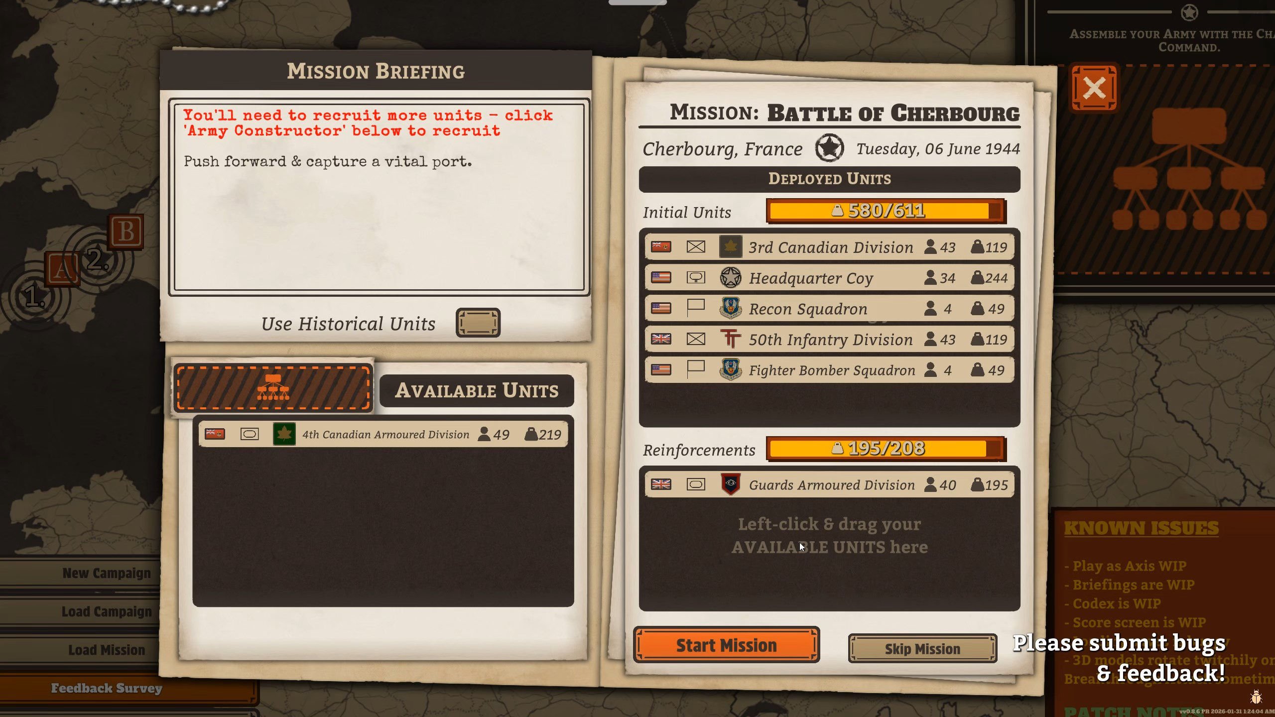 Ja tällä kertaa idea ja systeemi toimivat. Ei aina odotetusti, mutta eipä sotakaan etene koskaan odotusten mukaisesti. Divisioonatasolla toimiva komentojärjestelmä antaa komentajan käteen monipuolisen työkalupaketin, josta on helppo rakentaa halutunlainen toimintaketju: pehmitetään vihollista tykistökeskityksellä, määrätään joukot etenemään tunnustellen ja vihollista sitoen, laitetaan panssaridivisioona suorittamaan läpimurtohyökkäystä kymmenen kilometrin syvyyteen ja siirtymään sitten vastahyökkäysmoodiin. Joskus homma onnistuu, joskus ei. Vihollisella on usein oma sanottavansa aiheeseen.