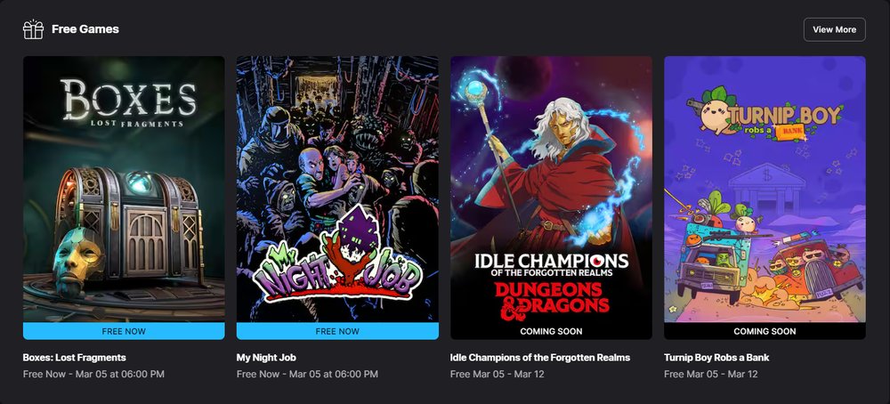 Ensi viikon torstaina on tarjolla Dungeons & Dragonsin maailmaan sijoittuva strategiapeli Idle Champions of the Forgotten Realms sekä roguelite-pankkiryöstöpeli Turnip Boy Robs a Bank. Pelit voi lunastaa itselleen viikon sisään Epic Games Launcherin tai Epic Games Storen verkkosivujen kautta.