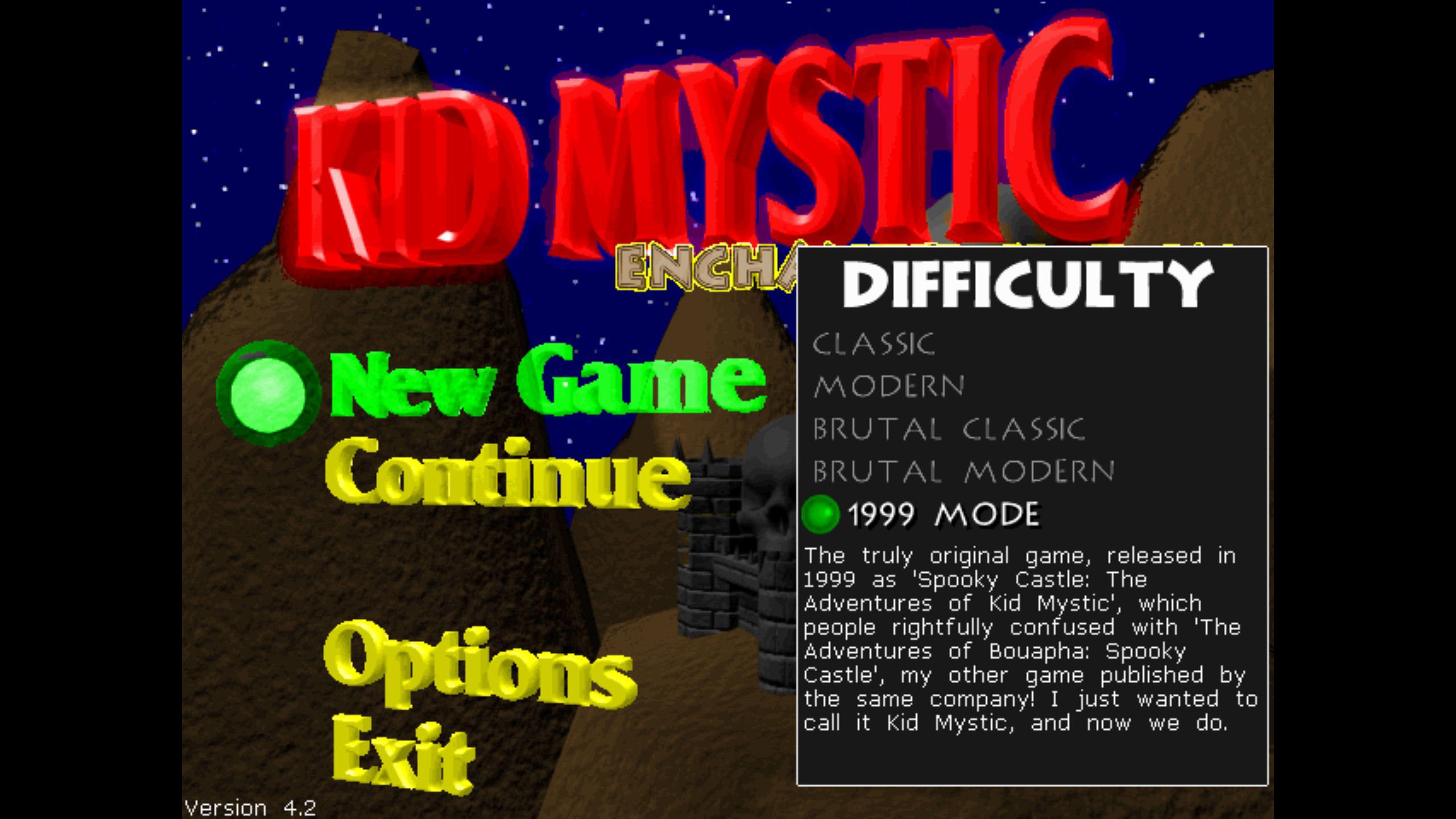 Hassutteleva toimintaroolipelipakkaus sisältää kolme versiota samasta pelistä: alkuperäinen Spooky Castle: The Adventures of Kid Mystic kaikkine kömpelyyksineen, viisi vuotta uudempi paranneltu Kid Mystic (Classic Mode) sekä Modern Mode -painos, jossa on lisää kenttiä ja uusi roolipelimäinen hahmonkehitys.