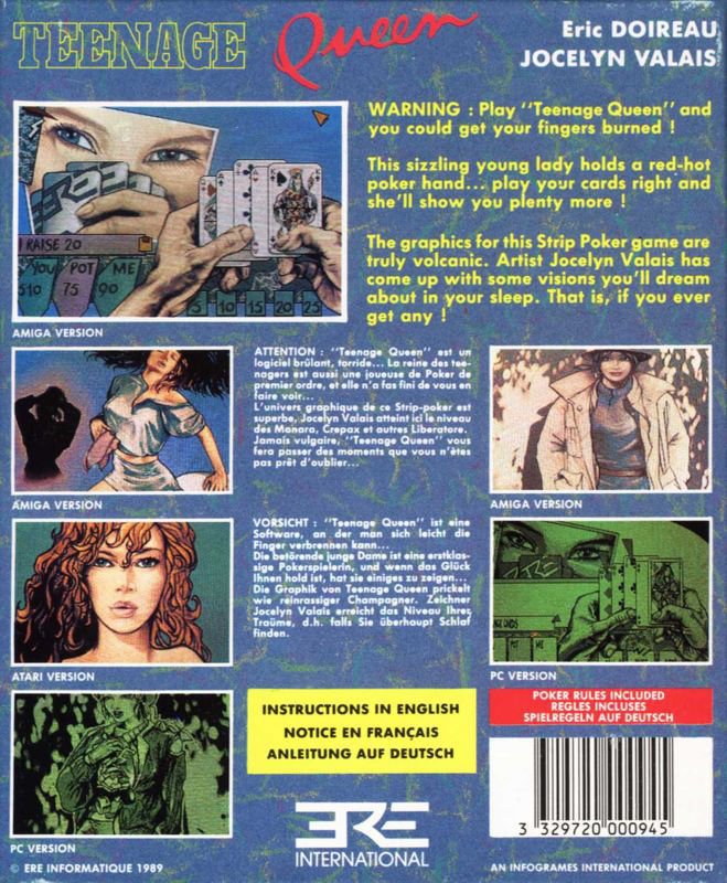 Laatupelejä ennen ja jälkeen tehneen ERE Informatiquen – myöhemmin siis Cryon – luoma pokeri on näet suorastaan taiteellinen ja viihdyttävä nakuilu. Sen visuaalinen tyyli puhuu ehtaa ranskalaista laatusarjakuvaa, ja vaatteiden putoilu on tehty harvinaisen hyvällä maulla. Itse tohtisin väittää tätä yhdeksi parhaista nakupokeripeleistä ikinä, joka kuuluu kirkkaasti genrensä Top 3:een.