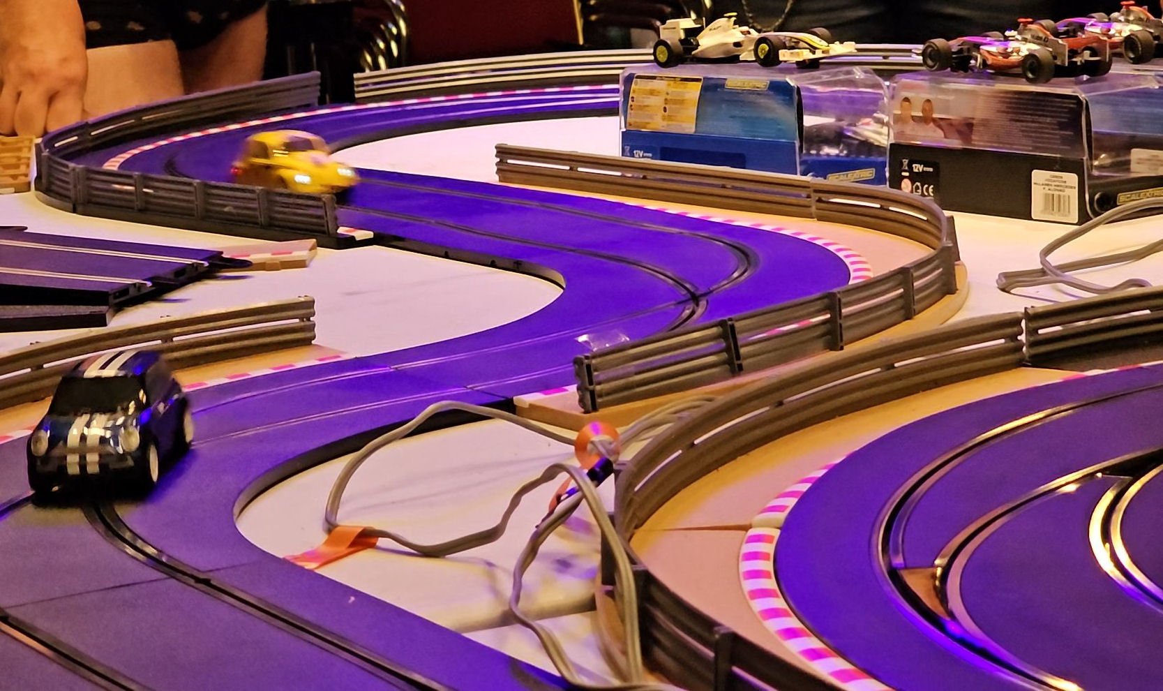 Minulla oli joskus aivan kersana jokin perusluokan autorata, ja vaivaiset 25 vuotta sitten kaappiini viuhahti Scalextric Sport -rata. Siitä kun mention eteenpäin vuosikymmen, niin rataa rupesikin kertymään lisää. Siirryin myös täysin digitaaliseen ja ennen kaikkea kuuden auton järjestelmään, jossa samalla kahdella kaistalla voi ajaa kuusikin autoa yhtaikaa. Ja sittenhän varastoon alkoi kertyä myös autoja. Lisää autoja. Lisää rataa. Lisää autoja. Ei niin, että olisin autohöpsö, mutta jotain kivaa tässä on, kun on tarpeeksi sekä omia lux-parhausautoja että ns. Kerholuokan kaaroja, joita voi antaa muidenkin käsiin.