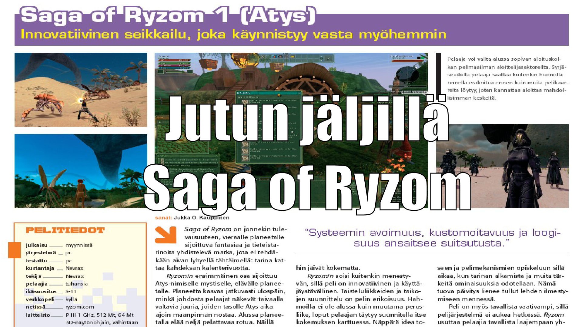 Jutun jäljillä - Kirppikseltä löytynyt Saga of Ryzom muistutti 22 vuoden takaisesta pressireissusta