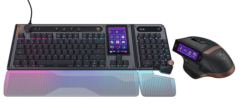 Turtle Beach julkisti uuden Command-sarjan ekosysteemin, johon kuuluu näppäimistöjä (KB7, KB5, KP7) ja hiiriä (MC3, MC5, MC7). Erityisen kalleimmista malleista tekee se, että niissä on kosketusnäyttö, josta voi käynnistellä sovelluksia ja hallita toimintoja. KB7 on langallinen TKL Hall-Effect-kytkimillä (210 eur), KB5 langallinen täysikokoinen mekaanisilla kytkimillä (160 eur) ja KP7 langallinen keypad Hall-Effect-kytkimillä (110 eur). MC7-hiiri maksaa 160 eur, näytötön MC5 29 ohjelmoitavalla toiminnolla 120 eur ja perusmallimpi MC3 80 euroa.