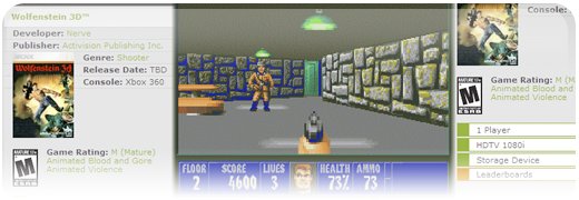 id Softwaren vuonna 1992 julkaisema Wolfenstein 3D ei kenties ollut ensimmäinen 3D-räiskintä, mutta natsilinnoituksessa seikkailevan B.J. Blazkowiczin edesottamukset nostivat pelityypin ensi kertaa suuren yleisön tietoisuuteen. Nyt Wolfenstein 3D on saapumassa Xbox Liveen, kertoo Team Xbox, joka bongasi pelille varatun myyntitilan Xbox.com-palvelusta.